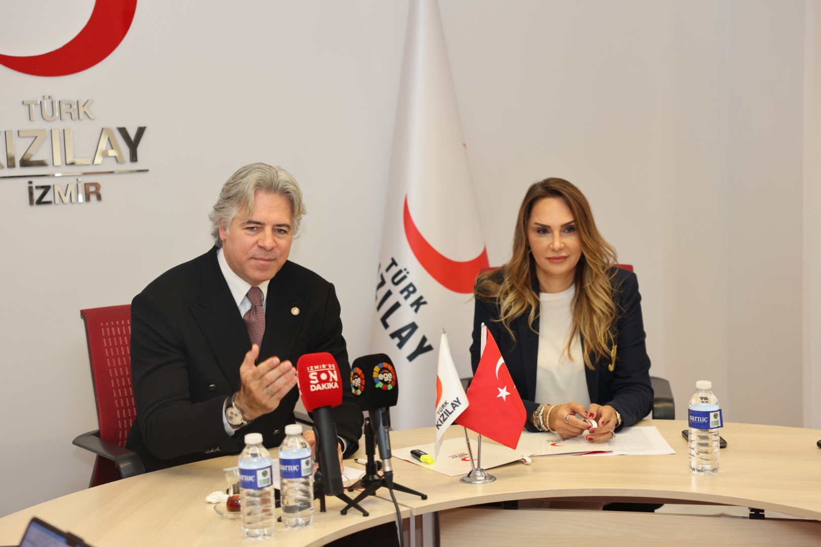 Türk Kızılay İzmir İl Merkezi Yönetim Kurulu Başkanı Kerem Fahri Baykalmış, Kızılay Kadın İzmir Başkanı Gonca Aslan