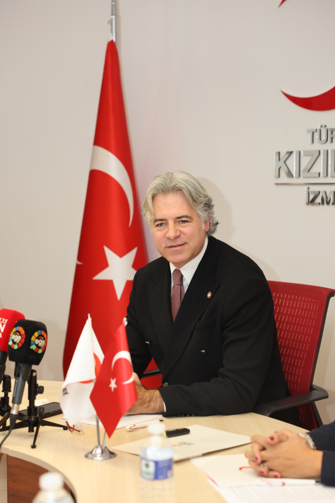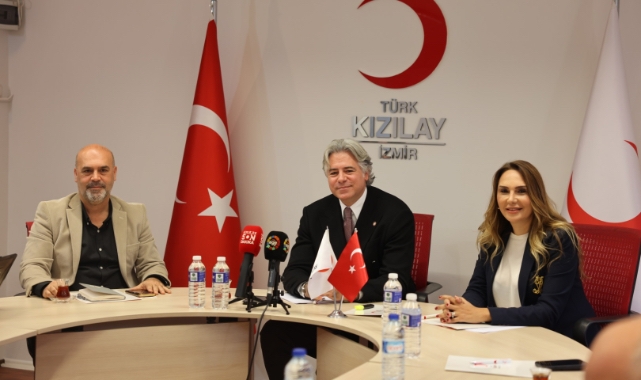 Türk Kızılay İzmir İl Yöneticisi Levent Açıl, Türk Kızılay İzmir İl Merkezi Yönetim Kurulu Başkanı Kerem Fahri Baykalmış, Kızılay Kadın İzmir Başkanı Gonca Aslan