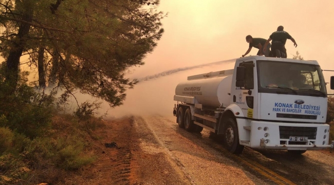 Konak Belediyesi’nin araç filosu, Bodrum’da günlerdir devam eden yangına müdahale için seferber oldu. Bodrum Belediyesi’nden gelen talep üzerine iki su tankeri ve bir kamyoneti yangın bölgesine tahsis eden Konak Belediye başkanı Abdül Batur, “Konak Belediyesi olarak yangınla mücadele eden ekiplere destek olmak için sahadayız. 2 tanker bir kamyonet ve 6 personelimiz, Bodrum Belediyesi koordinesinde görev almaya dün gece saatlerinde başladılar. Canla başla çalışan tüm ekiplerimize kolaylıklar diliyorum” dedi.