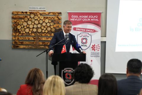 EGEMENLİK - Özel KOSBİ Zülfü–Mevlüt Çelik Mesleki ve Teknik Anadolu Lisesi’nde, Geleneksel Okul–Sanayi İş Birliği Buluşması’nın dördüncüsü gerçekleşti. Önemli buluşmada İzmir Büyükşehir Belediyesi ile Özel KOSBİ Zülfü–Mevlüt Çelik MTAL arasında Okul–Sanayi İş Birliği Protokolü imzalandı. Okul bahçesindeki kokteyl ve öğrencilerin müzik dinletisiyle başlayan programda açılış konuşmasını Okul Müdürü Nuray Gowans yaptı. Gowans konuşmasında “Yarınların inşası, okul ve sanayinin el ele vererek güçlü bir geleceğe yürümesiyle mümkündür!” sözleriyle okulda yapılan disiplinler arası çalışmalar, proje ve uygulamaların iş birlikleriyle güçleneceğine dikkat çekti. Programa İzmir Büyükşehir Belediye Başkanı Dr. Cemil Tugay, Kemalpaşa Belediye Başkanı Mehmet Türkmen, KOSBİ Bölge Müdürü Salman Eldeş, sanayi kuruluşlarının temsilcileri, STK temsilcileri ve çok sayıda davetli katıldı.![]()