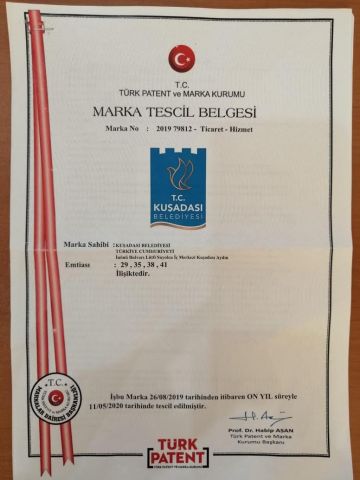 Kuşadası Belediyesi’nin yeni bir kurumsal kimlik oluşturmak amacıyla yürüttüğü çalışmalar kapsamında tasarlanan ve çok beğenilen yeni logosu Türk Patent ve Marka Kurumu tarafından tescillendi.