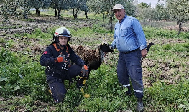 EGEMENLİK - Manisa'nın Akhisar İlçesi’ne bağlı Hamidiye Mahallesi’nde, kuyuya düşen bir koyun, Manisa Büyükşehir Belediyesi İtfaiye Dairesi Başkanlığı ekiplerinin başarılı operasyonuyla kurtarıldı.