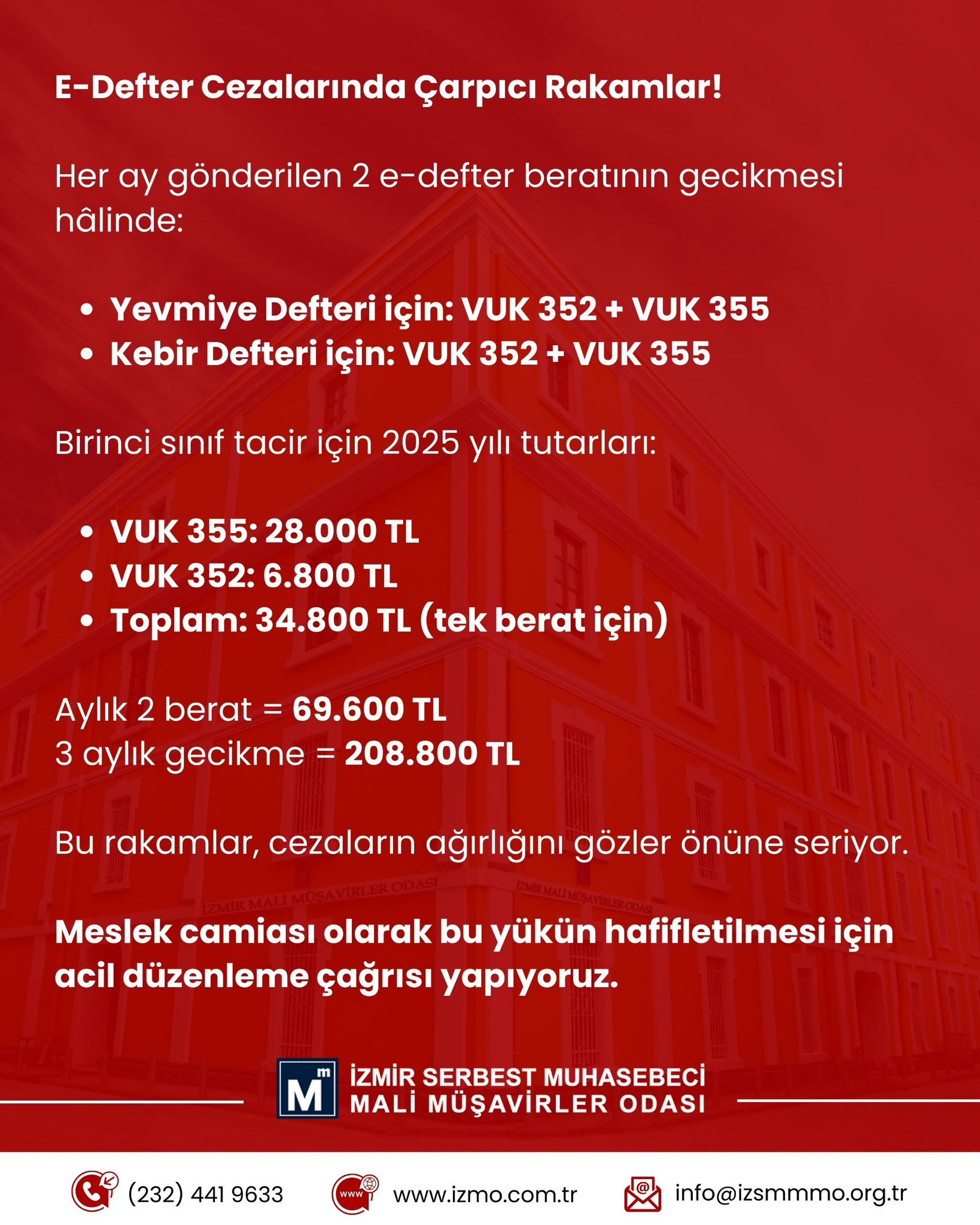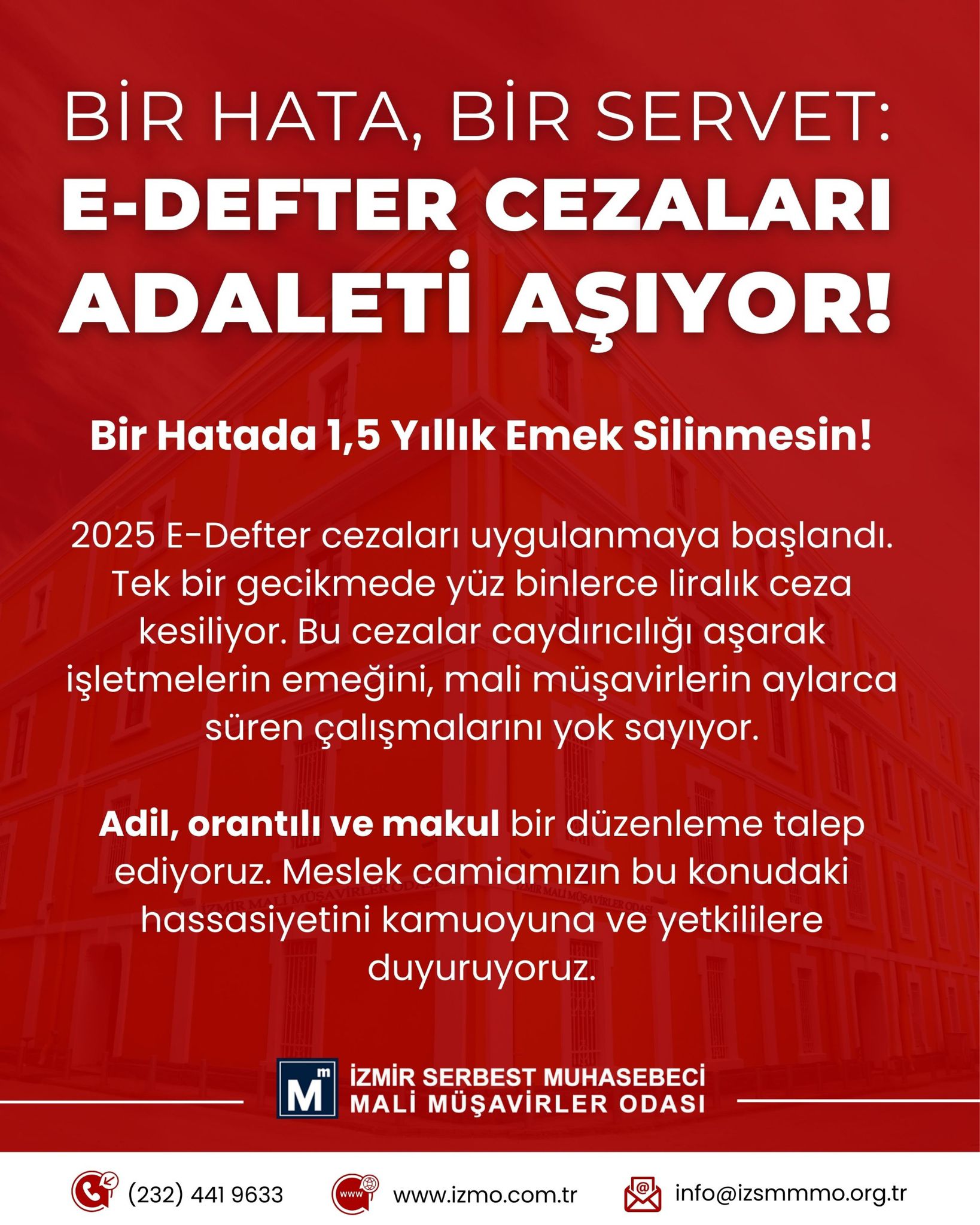 HABER: LEVENT HAMURCUOĞLUEGEMENLİK - E-defter, yasal zorunluluklar gereği tutulması gereken defterlerin elektronik dosya şeklinde hazırlanarak kaydedilmesi prosedürüne dayanan bir sistem olduğunu vurgulayan İzmir Serbest Muhasebeci Mali Müşavirler Odası (İZSMMMO) Yönetim Kurulu Başkanı Mehmet Kuzu, “Geleneksel matbu defterlerinin elektronik ortama aktarılmasıyla oluşturulan bu sistem, mali kayıtların daha güvenli, hızlı ve kolay bir şekilde tutulmasını sağladığını” belirterek, “Vergi Usul Kanunu uyarınca, e-Defter beratlarının (yevmiye defteri ve büyük defter) süresinde gönderilmemesi halinde ise, aynı fiil için hem VUK 352 Usulsüzlük Cezası hem de VUK 355 Özel Usulsüzlük Cezası birlikte uygulanmaktadır. Bu durum, mükellefler ve meslek mensuplarımız açısından ağır ve orantısız mali sonuçlar doğurmakta olduğunu” söyledi.Mevcut durumda aylık ve üç aylık dönemler halinde gönderilen defter beratları, yoğun iş yükü ve teknik aksaklıklar nedeniyle meslek mensuplarımız üzerinde ciddi bir baskı oluşturmaka olduğunu vurgulayan Kuzu;“Bu çerçevede;• Aynı fiil için çifte ceza uygulanmasının kaldırılması,• Ceza tutarlarının makul seviyelere çekilmesi,• Defter beratlarının gönderim sürecinin aylık ve üç aylık dönemler yerine yıllık esasa dönüştürülmesi, hususlarında gerekli düzenlemelerin yapılması amacıyla Maliye Bakanlığı’nın bu konulara daha duyarlı olması gerekmektedir.İlgili bakanlıktan mali müşavirlik mesleğinin sürdürülebilirliği için daha adil ve makul düzenlemelerin yapılmasını acilen beklediklerini” söyledi.İZSMMMO Başkanı Kuzu, “Elektronik defter gönderimi ile ilgili zaman zaman meslektaşlarımızın gönderme sürelerini kaçırabilmekte ve Gelir İdaresi Başkanlığı’ndan kaynaklı oluşan sistem arızalarından veya yoğunluktan dolayı sağlıklı işlememesinden dolayı çeşitli mağduriyetler yaşadıklarını” belirterek, konuşmasını daha sonra şöyle sürdürdü:“Süresinden sonra oluşturulan defter beratları ile ilgili uygulanan özel usulsüzlük cezalarının meslek mensuplarımız açısından mesleki kazançlarının ötesinde bir maliyete sebep olmaktadır. Bu durumda da mesleki motivasyonumuz kırılmaktadır. Maliye Bakanlığı’nın herhangi bir vergi kaybına sebep olmayan bu tür uygulamalar için ortak ve paydaş bir kurum olmamız nedeniyle meslektaşlarımıza bu kadar eziyet altına alınmasına hiç bir anlam verememekteyiz. Maliye Bakanlığı’na sıfır maliyetle hizmet eden mali müşavir meslek mensupları olarak, ilgili bakanlığın mesleğimizi desteklemesi ve koruması gerektiğine inancımız kaybetmeden yolumuza devam etme kararlılığımızı sürdürüyoruz.”