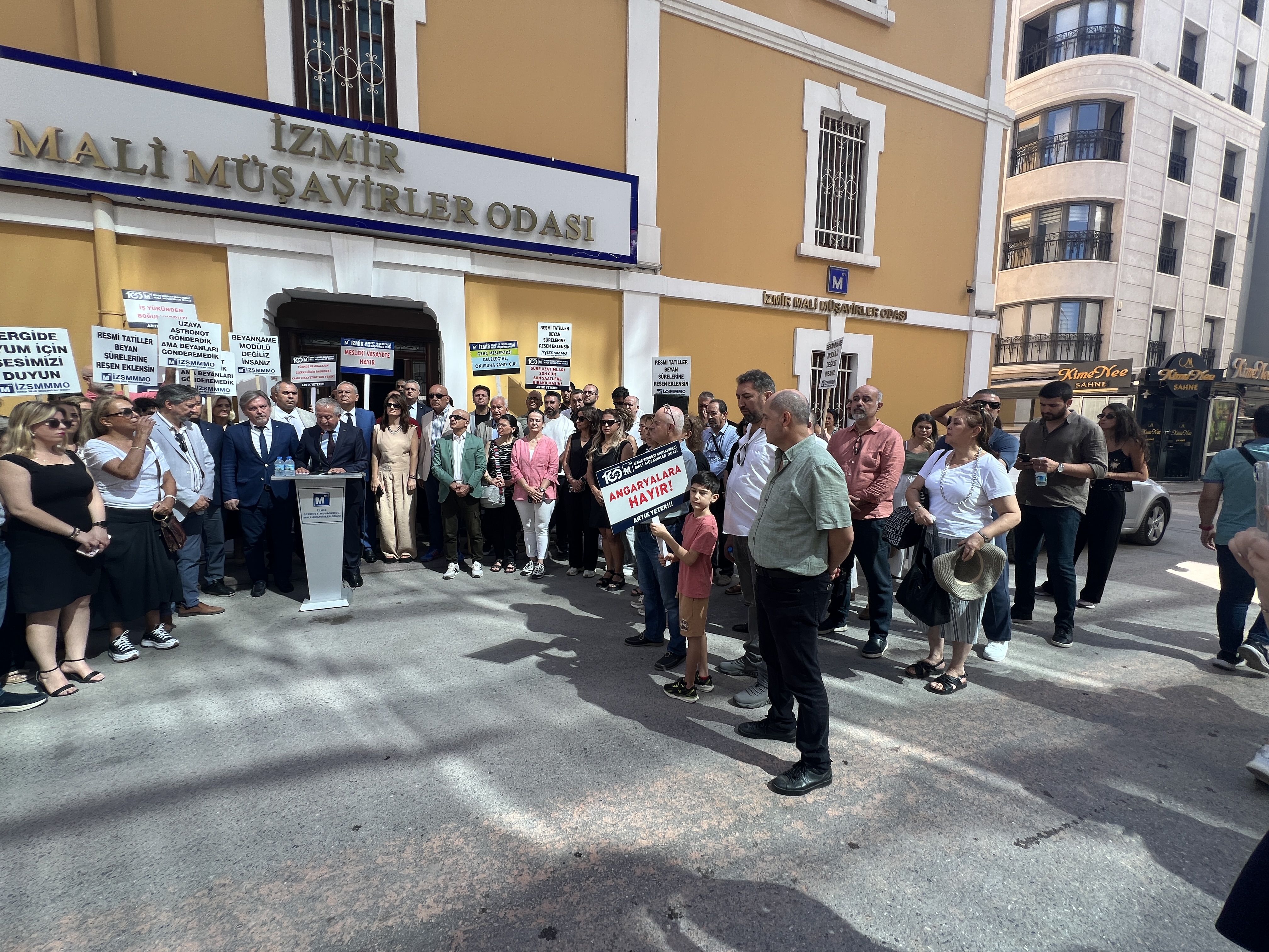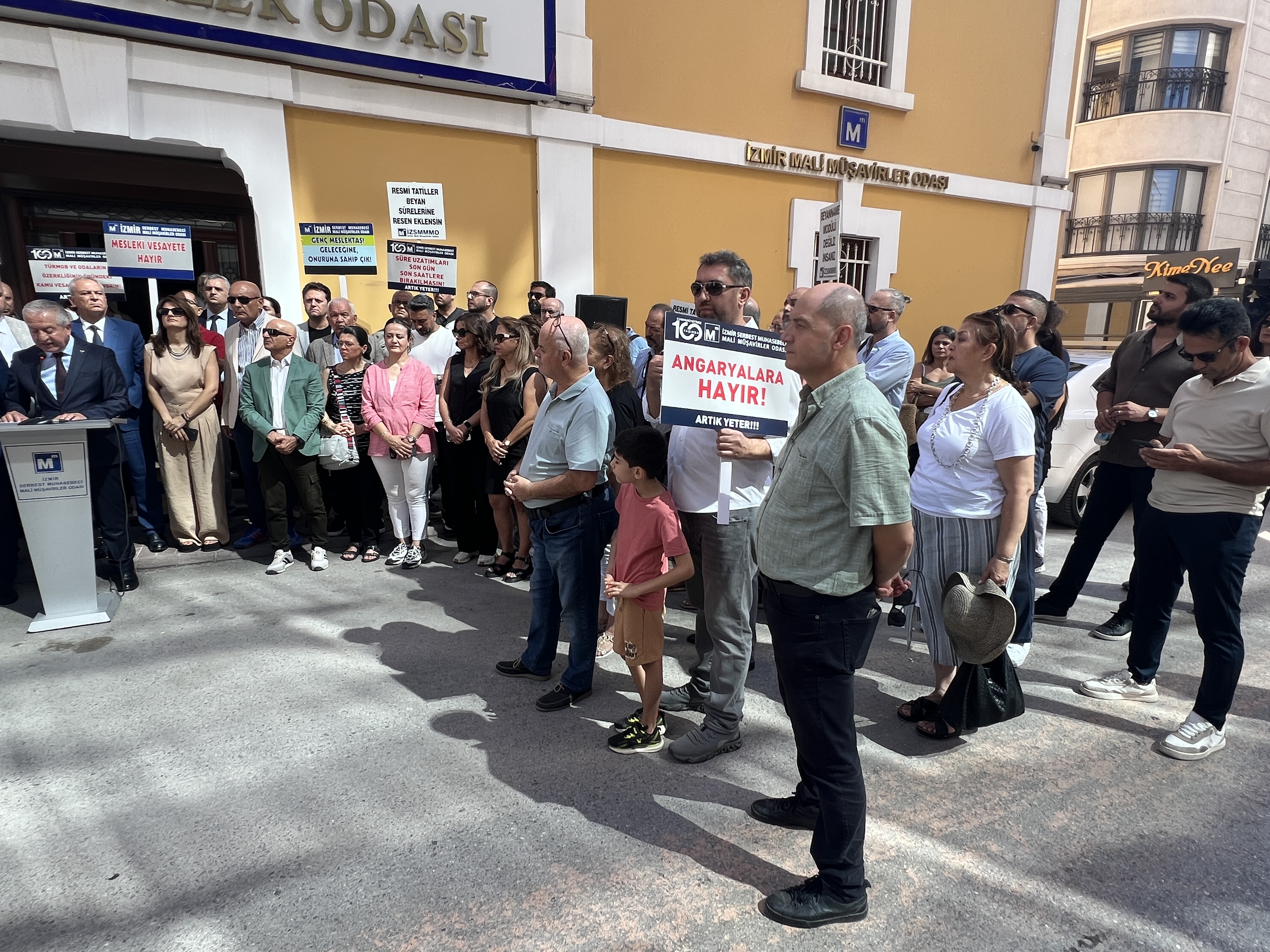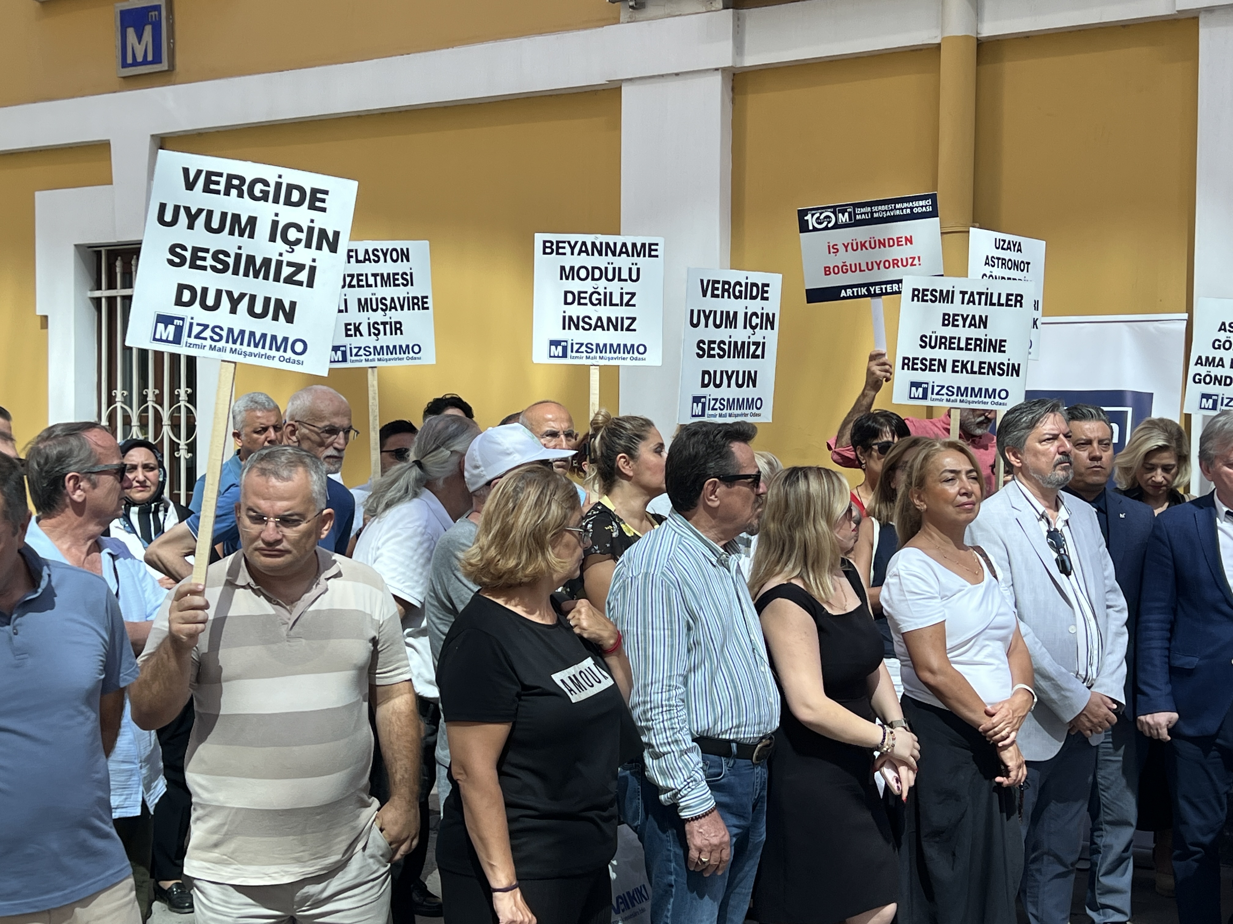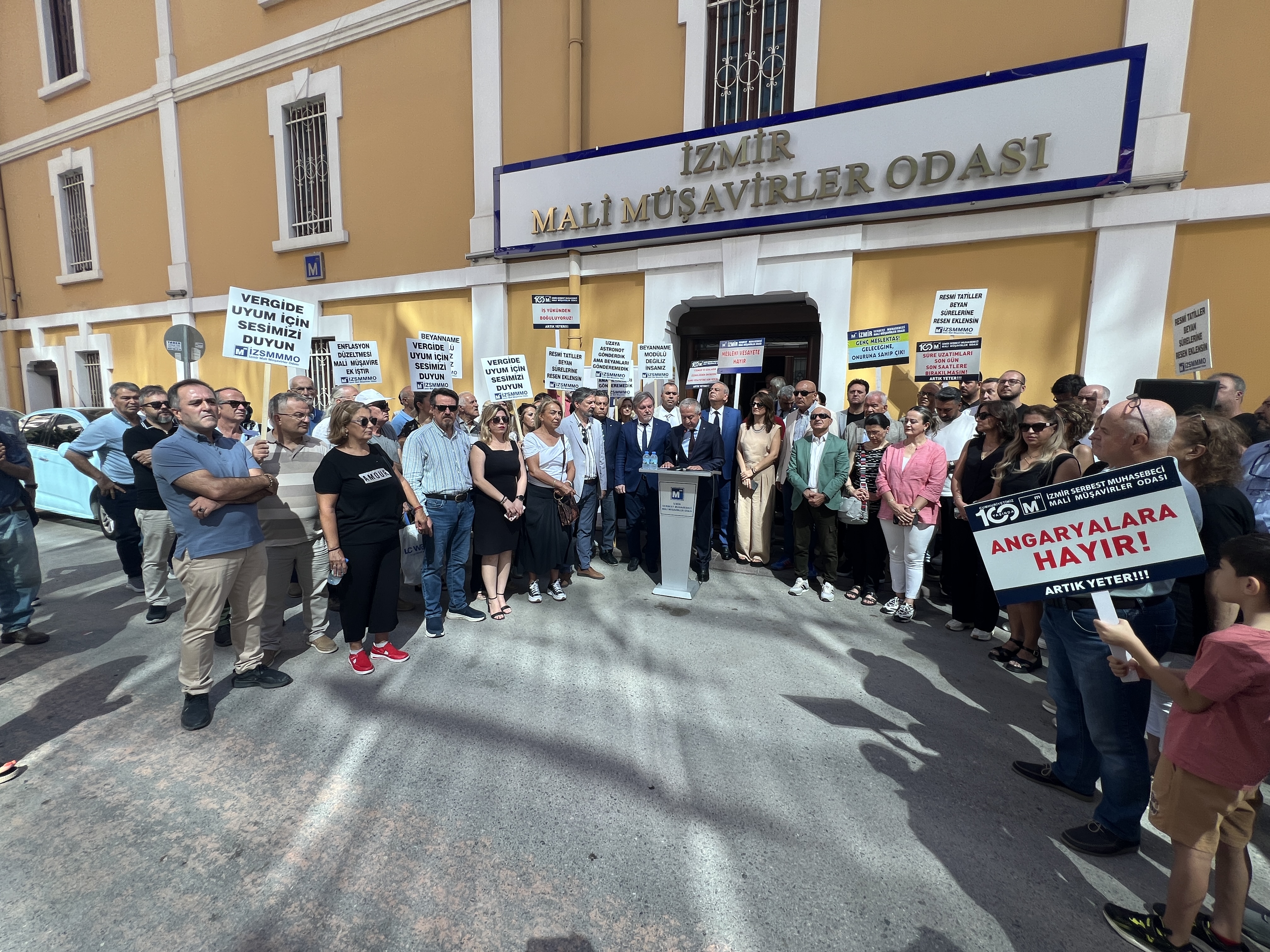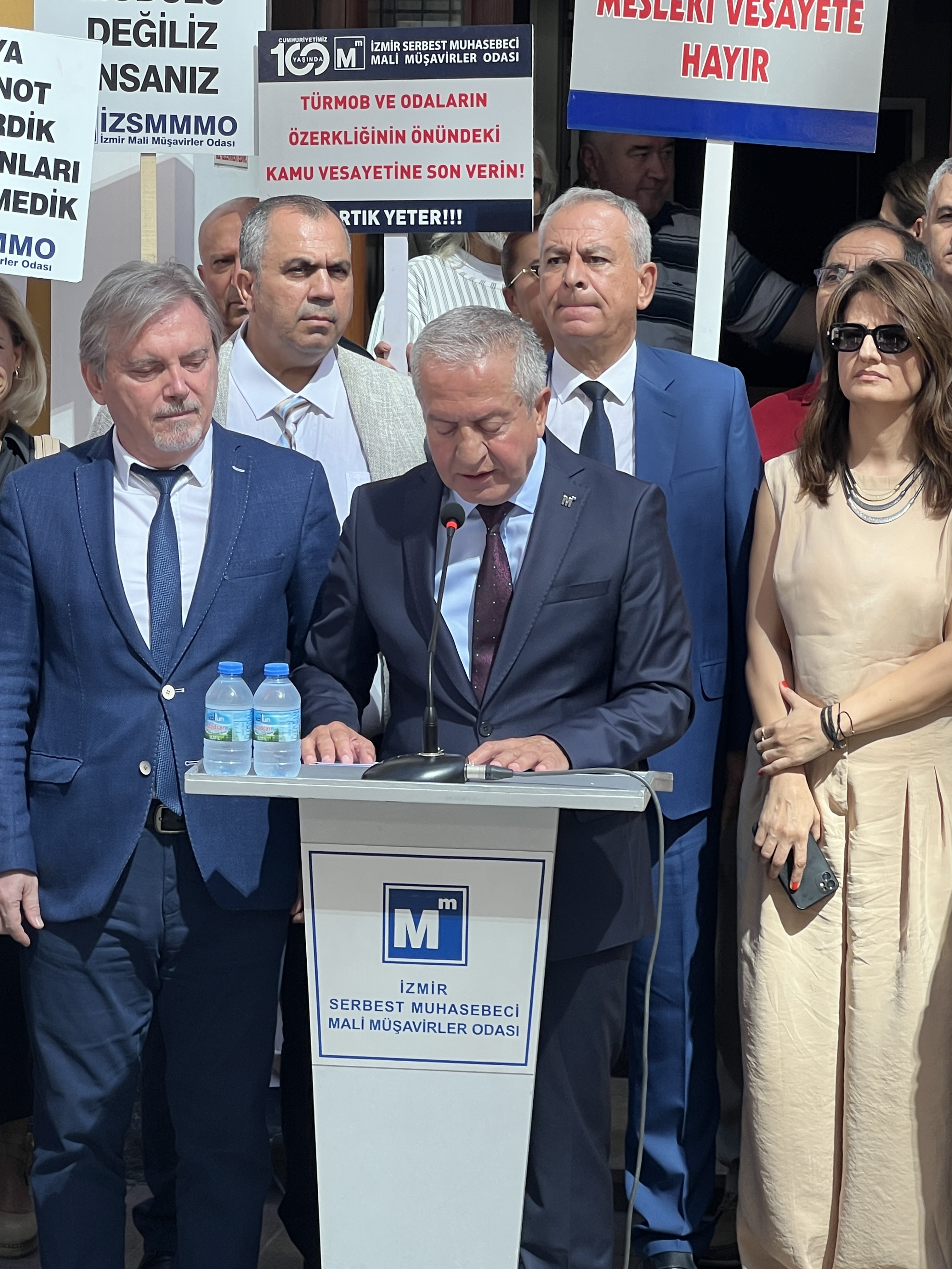 İzmir Serbest Muhasebeci Mali Müşavirler Odası (İZSMMMO) Yönetim Kurulu Başkanı Mehmet Kuzu, e-Defter uygulamasına ilişkin süreçlerdeki cezai yaptırımların ölçülü, adil ve hakkaniyetli şekilde düzenlenmesi yönündeki talepleri için basın açıklaması yaptı. İZSMMMO önünde yapılan basın açıklamasına çok sayıda mali müşavir katıldı. İZSMMMO Başkanı Kuzu, yaptığı basın açıklamasında şu görüşlere yer verdi: