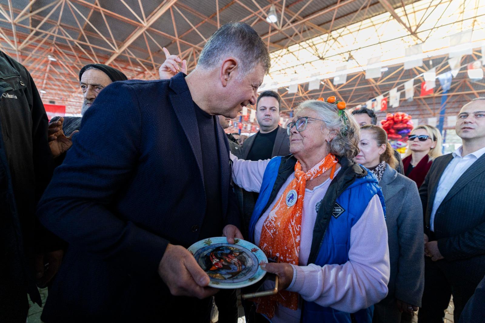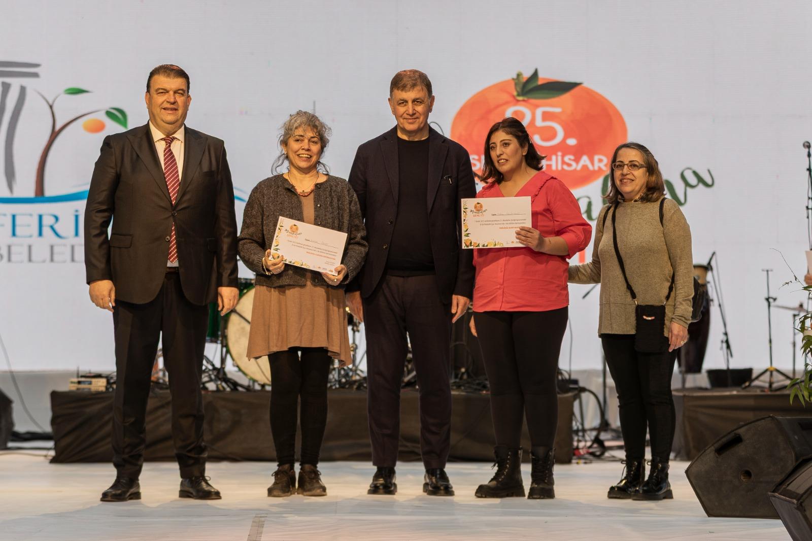 Mandalina üreticilerinin yaşadığı sorunları anımsatan ve benzer sıkıntıları sadece tarımla uğraşanların değil, ülkede üretime katkı sunmak isteyen herkesin yaşadığını söyleyen Başkan Tugay, “Bu sorunlar ülkemizin fakirleşmesine, insanlarımızın işsizleşmesine ve bunun gibi birçok soruna neden oluyor. Bir süre sonra insanlar ne yapacağını bilmez hale gelebiliyor. Yoksulluğun, işsizliğin altında bunalan insanlar birbirine zarar vermeye başlıyor. Bize 'Muhtaç olduğun kudret damarlarındaki asil kanda mevcuttur' diyen bir liderin ülkesinde yaşıyoruz. Eğer bu milletin damarlarında o asil kan dolaşıyorsa, bu ülkede yanlış hiçbir şeye izin vermez” diye konuştu. “Bu büyük mücadele grubuna hepinizi katılmaya davet ediyorum”Çalışmadan hiçbir şeyin düzeltilemeyeceğini vurgulayan İzmir Büyükşehir Belediye Başkanı Dr. Cemil Tugay, şu ifadeleri kullandı: “Bu mücadeleyi birlikte yapacağız. Sokakları mis gibi mandalina kokan bu güzel şehirde, burada olan ve olmayan herkese sesleniyorum; büyük milletimizin herhangi bir yanlışın önünde diz çökeceğini düşünenler varsa, boşuna hayal kuruyorlar. Bizler hiçbir yanlışın önünde diz çökmeyeceğiz. Bütün sorunlarımızı ve sıkıntılarımızı çalışarak, birbirimize sahip çıkarak çözeceğiz. Bu işin mücadelesini yapan herkes burada. Bu büyük mücadele grubuna hepinizi katılmaya davet ediyorum. Yaşasın İzmir, yaşasın Seferihisar, yaşasın Türkiye Cumhuriyeti...” “Üreticinin ne zaman uykusunun kaçtığını bilirim”Seferihisar Belediye Başkanı İsmail Yetişkin de yaptığı konuşmada bunun sadece bir şenlik olmadığını, Seferihisar'ın ruhunu, üretim gücünü ve dayanışmanın sıcaklığını yaşadığı günlerden biri olduğunu söyledi. Çocukluğunun mandalina bahçelerinde geçtiğini ifade eden Yetişkin, “Küçük yaşlardan itibaren dalların arasında koştuğum, mandalinanın kokusu ile büyüdüğüm, Seferihisar'ı bahçesinden, toprağından tanırım. Burada yalnızca bir belediye başkanı olarak değil aynı zamanda üretici olarak da bulunuyorum. Bu topraklarda doğmuş, büyümüş ve bu toprakların ekmeğini yemiş biri olarak üreticimizin derdini en iyi anlayanlardan biriyim. Ağacın ne zaman üzüldüğünü, toprağın ne zaman konuştuğunu, üreticinin ne zaman uykusunun kaçtığını bilirim. Bütün bu dertler benim de derdim oldu” dedi. Bu yıl mandalina satışlarında yaşanan sorunların herkesi derinden etkilediğini de vurgulayan Yetişkin, “Üreticimiz emeğinin karşılığını bulamadı. Fiyatlar, maliyeti bile karşılamadı. Bu tablo kabul edilemez. Buradan güçlü bir çağrı yapmak istiyorum; devletin ve tüm yetkili kurumların, mandalina üreticisi için acil önlemler alması gerekiyor. Biz Seferihisar olarak üreticimizin yanındayız ama bu yükü sadece üreticinin sırtına bırakmak doğru değil. Üreticinin alın teri bu memleketin geleceğidir. Biz bu geleceğe sahip çıkmak zorundayız” diye konuştu. Ödüller sahiplerini buldu25. Seferihisar Mandalina Şenliği kapsamında düzenlenen Hediyelik Eşya Yarışması'nda dereceye giren tasarımlar açıklandı. Başkan Tugay ile İsmail Yetişkin; birinci olan Zeynep Şumnulu, ikinci olan Bahar Özcan ile üçüncü olan Kübra Selüktekin'e ödüllerini verdi.