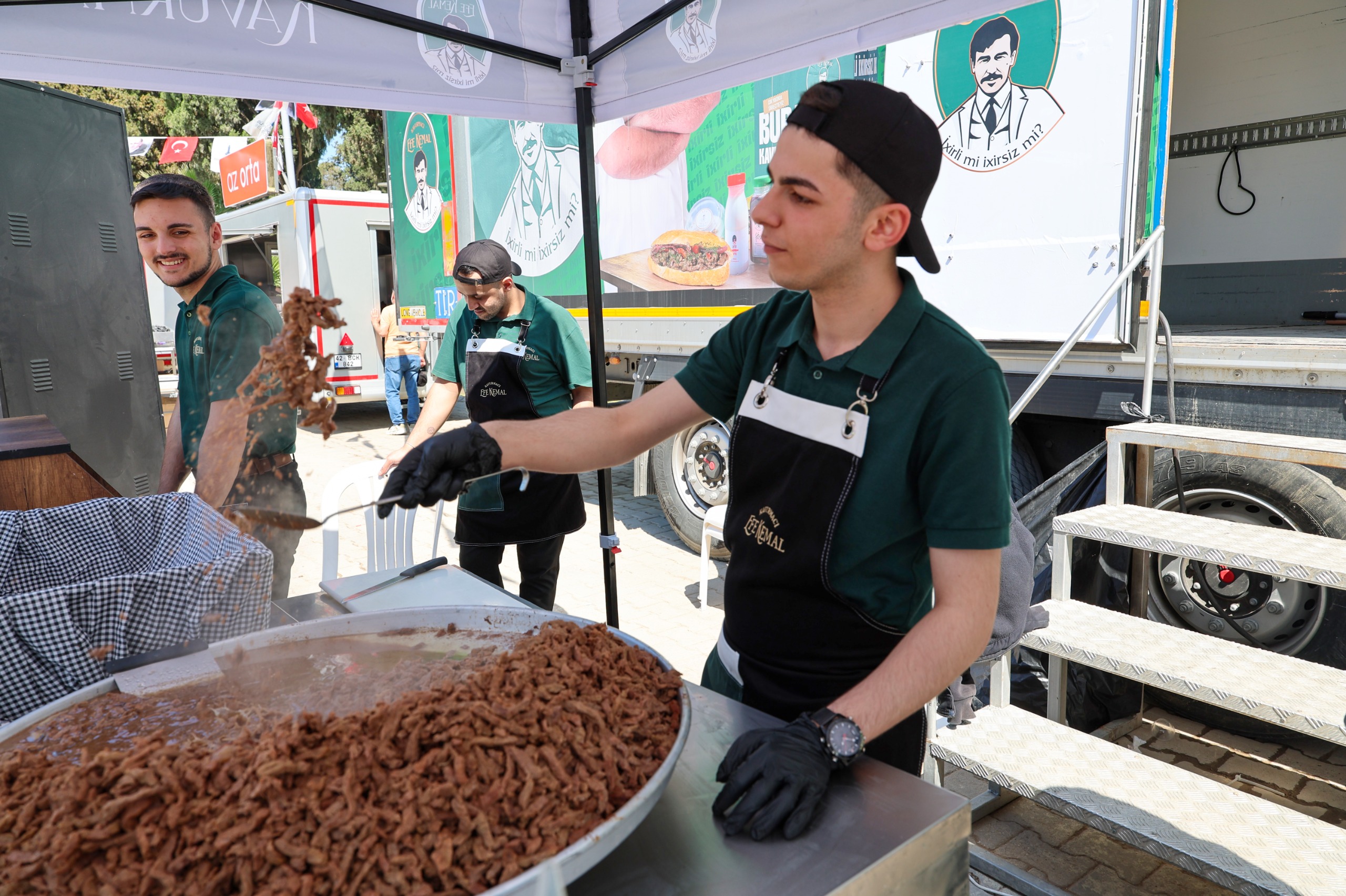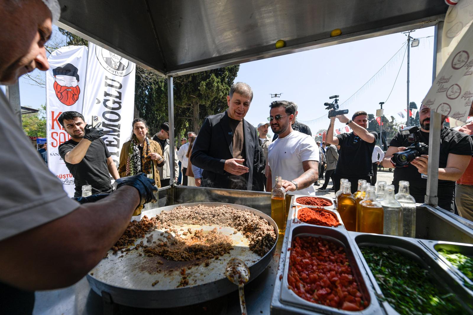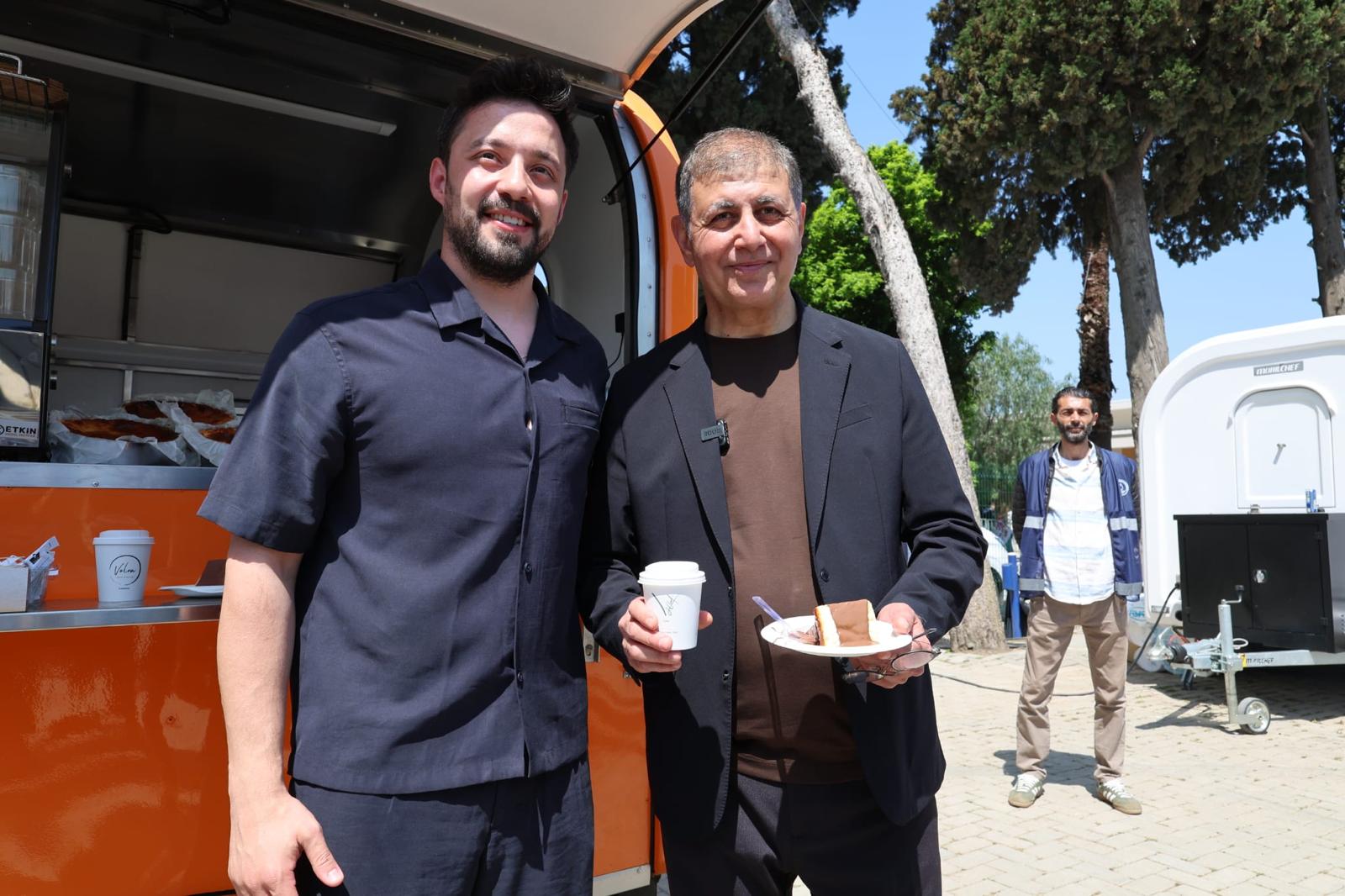 EGEMENLİK - İzmir Büyükşehir Belediyesi ve iştiraki İzmir Kültür AŞ tarafından düzenlenen “MasterChef Şeflerin Rotası İzmir” etkinliği, Kültürpark eski lunapark alanında ikinci gününde de İzmirlilerin yoğun ilgisiyle devam etti. İzmir’in mutfak kültürünü ön plana çıkarırken ziyaretçilere festival havası yaşatan etkinliği ziyaret eden İzmir Büyükşehir Belediye Başkanı Dr. Cemil Tugay, MasterChef yarışmacısı şefler ve İzmirlilerle buluştu. Başkan Tugay, şeflerin lezzetlerini vatandaşlara ikram etti. Alandaki çocukların yoğun ilgisiyle karşılaşan Başkan Tugay, şeflerle de sohbet etti. Etkinlikte İzmir’e özgü lezzetlerin yanı sıra yarışmaya katılan şeflerin hazırladığı özel tarifler ve kendilerine has dokunuşlarla ortaya çıkan tatlar da büyük ilgi gördü. İzmirliler hem kentin geleneksel mutfak kültürünü hem de MasterChef şeflerinin yorumladığı özgün lezzetleri deneyimleme fırsatı yakaladı.Tugay: İnanıyorum İzmir sizler için de çok özel bir yer olacakAdının yazılı olduğu önlükle MasterChef yarışmasıyla özdeşleşen ocağın başına geçen İzmir Büyükşehir Belediye Başkanı Dr. Cemil Tugay, “Birer birer şeflerle tanıştık. Bu keyifli ortamın hazırlanmasına katkıda bulunan çok değerli arkadaşlarım var İzmir Büyükşehir Belediyesi’nden. Bu tür etkinlikler her zaman çok seviliyor, tekrarlarını yeniden bekliyoruz. Her birisi ‘biz İzmir’e işyeri açmak istiyoruz, bize dükkan lazım’ diyor. Size en iyisi biz çarşı yapalım bir tane MasterChef çarşısı. Bol keyif ve kazanç diliyorum. Bizler sizleri seviyoruz, İzmir seviyor. Bu tür buluşmalarla inanıyorum İzmir sizler için de çok özel bir yer olacak” şeklinde konuştu. “İzmir bizi çok sevdi, biz de İzmir’i çok sevdik”Etkinliğe katılan MasterChef yarışmacısı, şef Semihcan Temiz, “Muazzamdı, bütün belediye çalışanlarına çok teşekkür ediyoruz, her konuda çok yardımcı oldular. Artık genelde bütün arkadaşlarımla birlikte İzmir’e bir dükkan planımız var gibi. İzmir bizi çok sevdi, biz de İzmir’i çok sevdik. Çok keyif aldık, çok teşekkür ediyoruz” dedi.