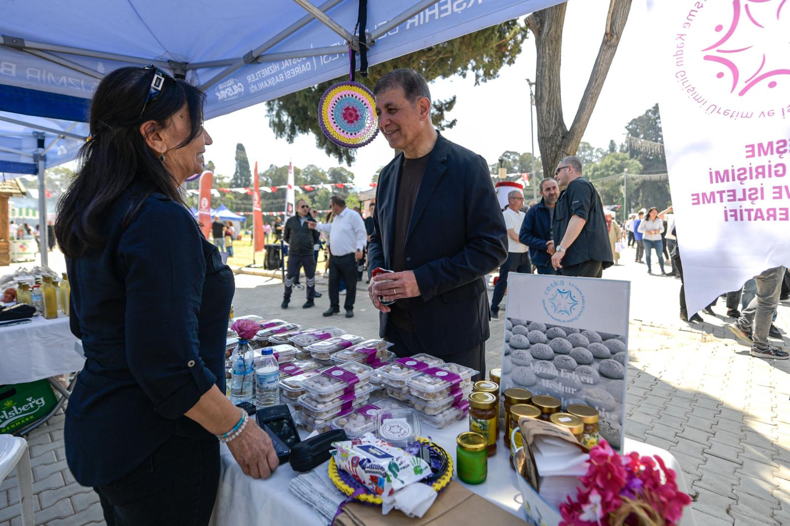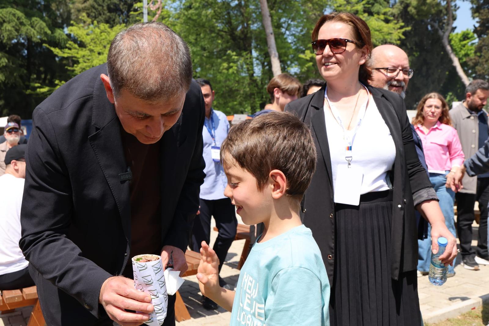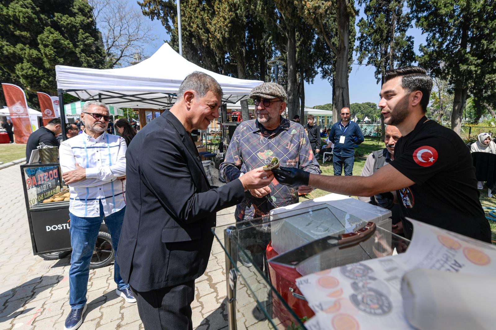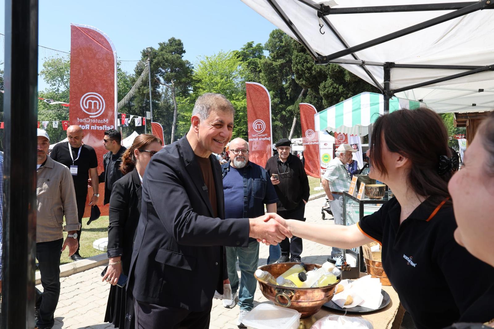 EGEMENLİK - İzmir Büyükşehir Belediyesi ve iştiraki İzmir Kültür AŞ tarafından düzenlenen “MasterChef Şeflerin Rotası İzmir” etkinliği, Kültürpark eski lunapark alanında ikinci gününde de İzmirlilerin yoğun ilgisiyle devam etti. İzmir’in mutfak kültürünü ön plana çıkarırken ziyaretçilere festival havası yaşatan etkinliği ziyaret eden İzmir Büyükşehir Belediye Başkanı Dr. Cemil Tugay, MasterChef yarışmacısı şefler ve İzmirlilerle buluştu. Başkan Tugay, şeflerin lezzetlerini vatandaşlara ikram etti. Alandaki çocukların yoğun ilgisiyle karşılaşan Başkan Tugay, şeflerle de sohbet etti. Etkinlikte İzmir’e özgü lezzetlerin yanı sıra yarışmaya katılan şeflerin hazırladığı özel tarifler ve kendilerine has dokunuşlarla ortaya çıkan tatlar da büyük ilgi gördü. İzmirliler hem kentin geleneksel mutfak kültürünü hem de MasterChef şeflerinin yorumladığı özgün lezzetleri deneyimleme fırsatı yakaladı.Tugay: İnanıyorum İzmir sizler için de çok özel bir yer olacakAdının yazılı olduğu önlükle MasterChef yarışmasıyla özdeşleşen ocağın başına geçen İzmir Büyükşehir Belediye Başkanı Dr. Cemil Tugay, “Birer birer şeflerle tanıştık. Bu keyifli ortamın hazırlanmasına katkıda bulunan çok değerli arkadaşlarım var İzmir Büyükşehir Belediyesi’nden. Bu tür etkinlikler her zaman çok seviliyor, tekrarlarını yeniden bekliyoruz. Her birisi ‘biz İzmir’e işyeri açmak istiyoruz, bize dükkan lazım’ diyor. Size en iyisi biz çarşı yapalım bir tane MasterChef çarşısı. Bol keyif ve kazanç diliyorum. Bizler sizleri seviyoruz, İzmir seviyor. Bu tür buluşmalarla inanıyorum İzmir sizler için de çok özel bir yer olacak” şeklinde konuştu. “İzmir bizi çok sevdi, biz de İzmir’i çok sevdik”Etkinliğe katılan MasterChef yarışmacısı, şef Semihcan Temiz, “Muazzamdı, bütün belediye çalışanlarına çok teşekkür ediyoruz, her konuda çok yardımcı oldular. Artık genelde bütün arkadaşlarımla birlikte İzmir’e bir dükkan planımız var gibi. İzmir bizi çok sevdi, biz de İzmir’i çok sevdik. Çok keyif aldık, çok teşekkür ediyoruz” dedi.