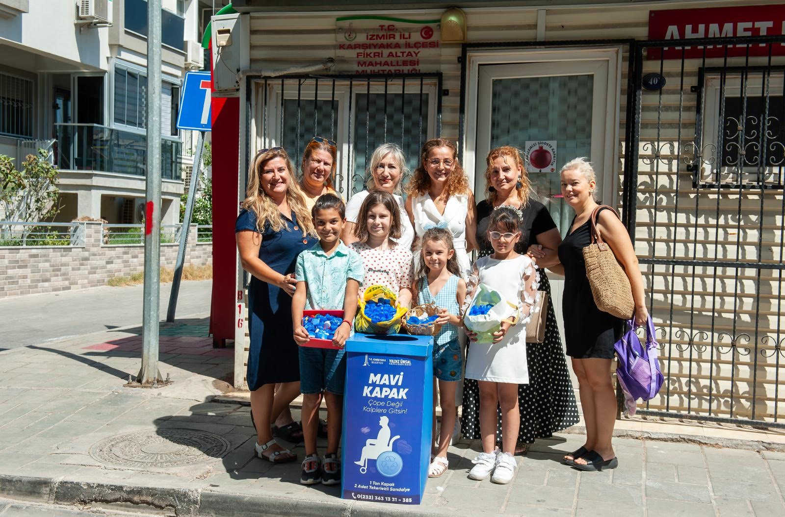 İYİLİK HAREKETİ BÜYÜYORKarşıyaka Belediye Başkanı Yıldız Ünsal, “Projenin koordinatörlüğü yapan Prof. Dr. Nurselen Toygar’ın önerisiyle yeniden başlattığımız Mavi Kapak kampanyasına destek veren vatandaşlarımızı, özellikle de çocuklarımızı yürekten kutluyorum. Kıymetli hocamıza ve bu anlamlı iyilik hareketine katılan herkese teşekkür ediyorum. Hem engelli vatandaşlarımıza umut olmak hem de geri dönüşüme katkı sağlayarak doğamızı korumak için kampanyamızı büyütmeye devam edeceğiz” diye konuştu.