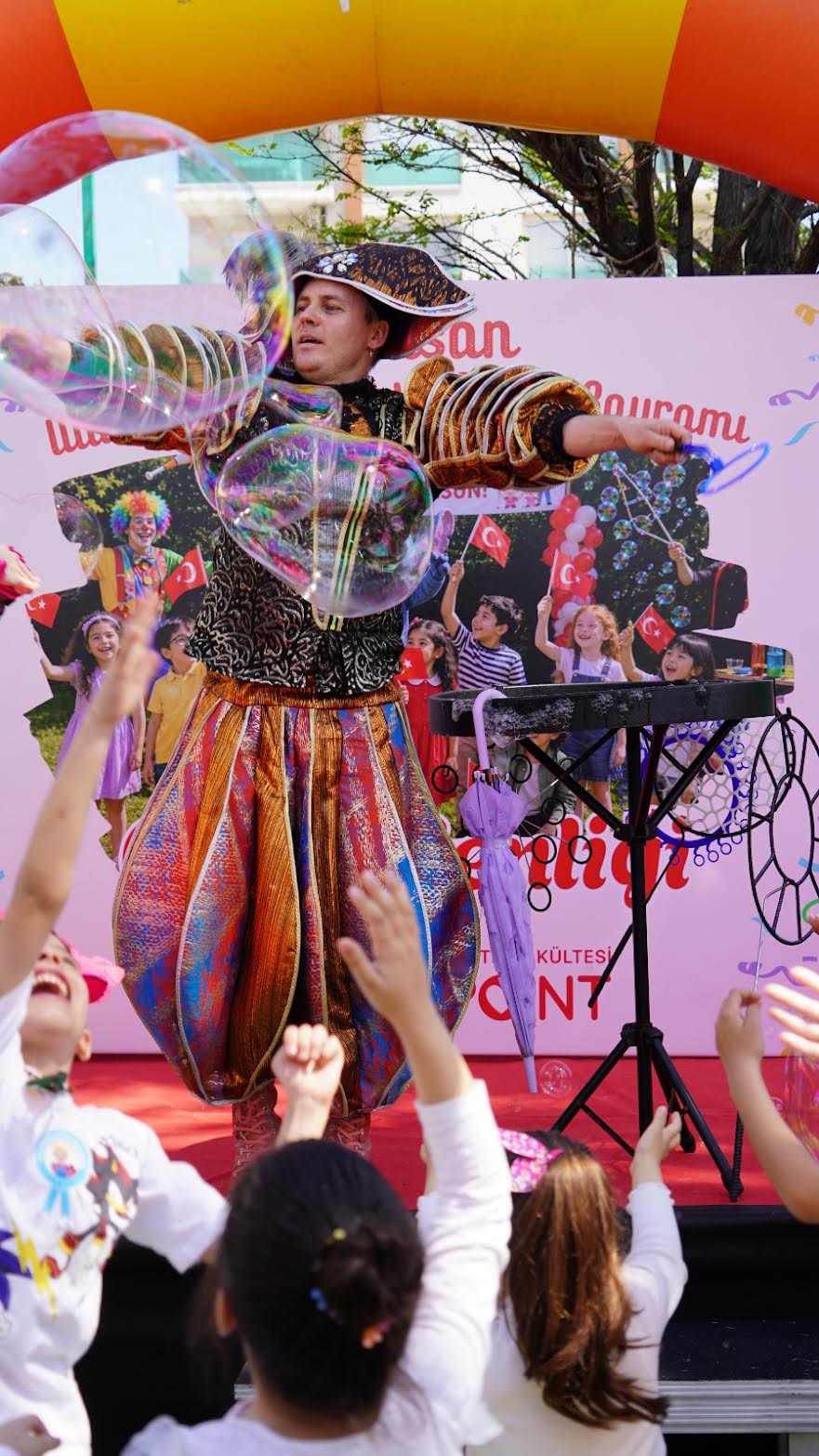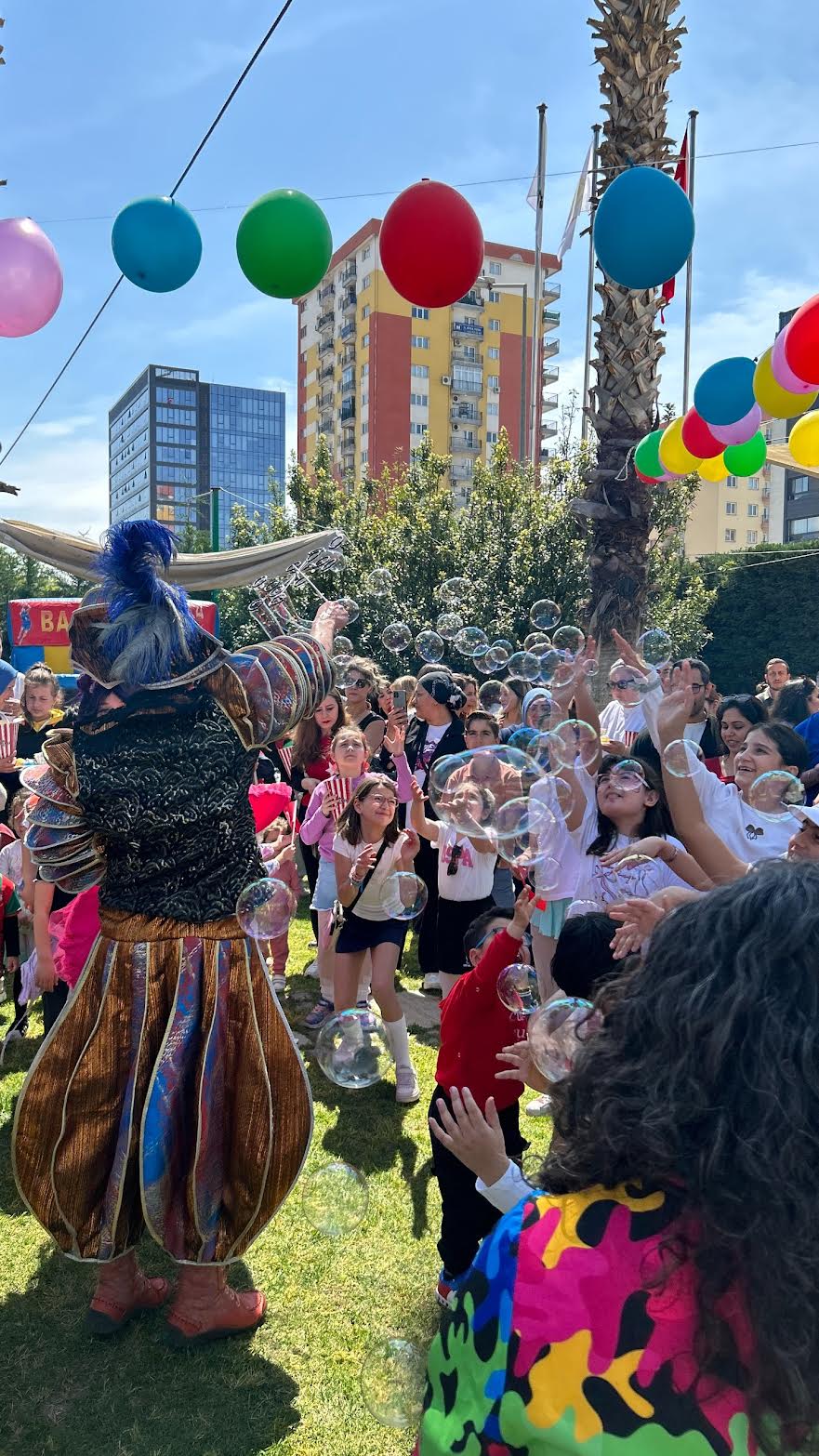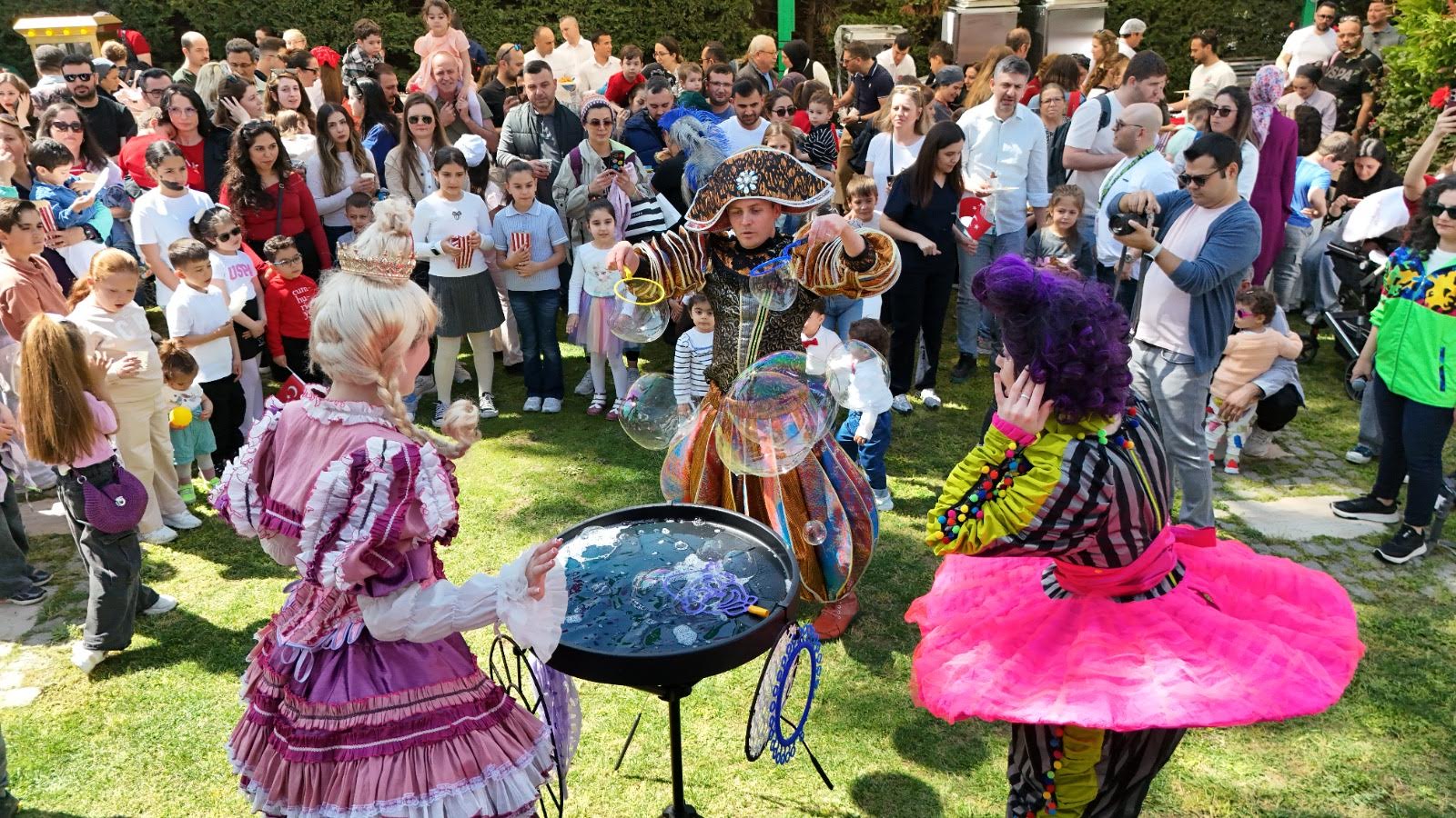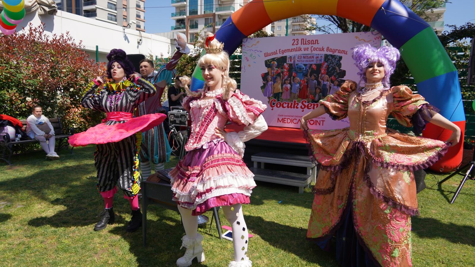 EGEMENLİK - Tüm dünyada çocuklara armağan edilmiş ilk ve tek ulusal bayram olan 23 Nisan Ulusal Egemenlik ve Çocuk Bayramı, İEÜ Medical Point Hastanesinde düzenlenen çocuk şenliği ile kutlandı. Hastane bahçesinde düzenlenen çocuk şenliğine hastane çevresindeki mahallelerde yaşayan çocuklar, çalışanların çocukları ve çeşitli hastalıklar nedeniyle tedavi gören çocuklar katıldı. Ünlü çizgi film karakterlerinin konuk olduğu şenliğe katılan çocuklar balon oyunları, sihirbazlık gösterileri, şişme oyuncaklar ve dans gösterileri ile gönüllerince eğlendi.