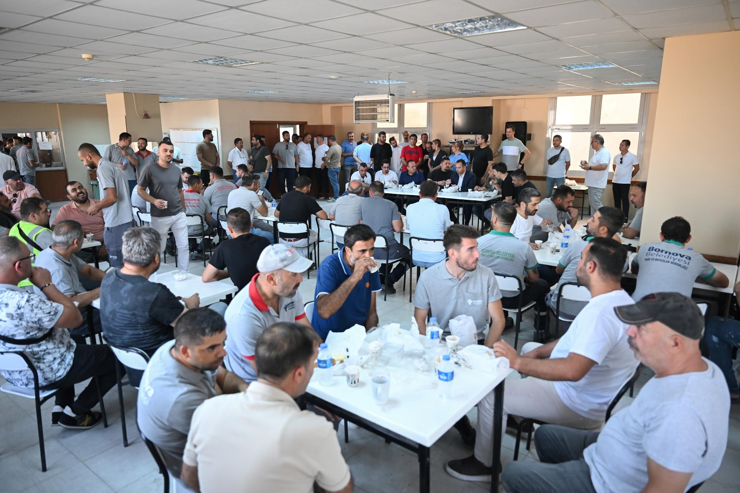 EGEMENLİK - Bornova Belediye Başkanı Ömer Eşki, İzmir'i ve Bornova'yı tehdit eden yangınlarda canla başla mücadele eden belediye emekçileriyle sabahın ilk ışıklarında bir araya geldi. Şantiyede kurulan kahvaltı sofrasında personele bizzat teşekkür eden Başkan Eşki, "Sizler bu memleketin taşına toprağına, çiçeğine ağacına sahip çıktınız" dedi.