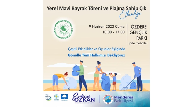 Menderes’in 43 kilometrelik sahil şeridinde gerekli kriterleri yerine getirerek mavi bayrak almaya hak kazandıklarını ifade eden Menderes Belediye Başkan V. Erkan Özkan, "Turizmin cenneti Menderes’imizin sahillerinde gerekli tüm çalışmaları gerçekleştiriyoruz. Yaptığımız çalışmalarımızın bir sonucu da almaya hak kazandığımız mavi bayraklarımız. 3 halk plajımız bu yıl da mavi bayrak almaya hak kazandı. Cuma günü düzenleyeceğimiz tören ile bayraklarımızı göndere çekeceğiz. Mavi bayrak töreninin yanı sıra plaj temizliğini de gönüllülerimizle birlikte gerçekleştireceğiz. Tüm vatandaşlarımızı Cuma günü Orta Mahalle’ de düzenleyeceğimiz mavi bayrak töreni ve plaj temizliği etkinliğimize davet ediyorum’’ dedi.