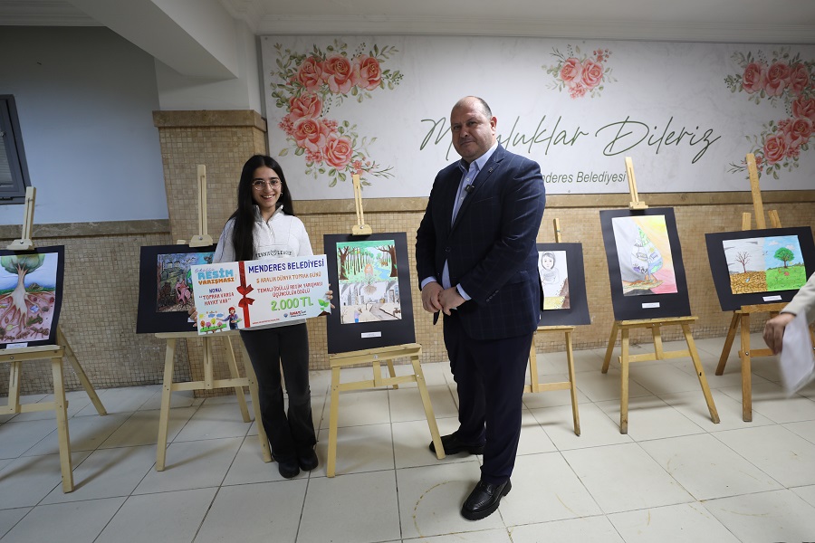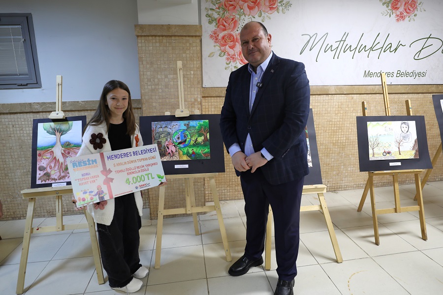 EGEMENLİK - Menderes Belediyesi İklim Değişikliği ve Sıfır Atık Müdürlüğü, “toprak varsa, hayat var” sloganı ile toprak temalı bir resim yarışması düzenledi. Ödül töreninin 5 Aralık Dünya Toprak Günü’nde gerçekleştirildiği yarışmanın sonunda kazananlara ödüllerini Menderes Belediye Başkanı İlkay Çiçek takdim etti.
