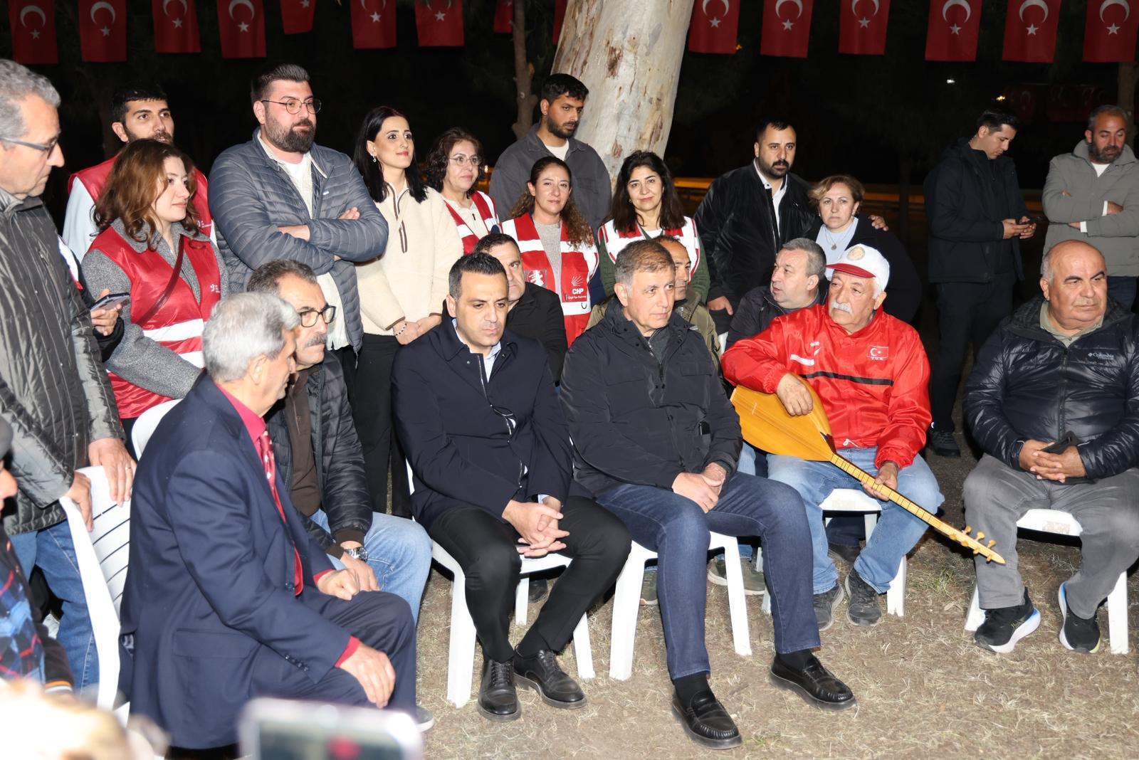 İzmir Büyükşehir Belediye Başkanı Dr. Cemil Tugay'ın başlattığı Meslek Fabrikası nöbeti İzmirliler'in büyük desteği ile sürüyor. Nöbetin 8. gününe CHP Aliağa, Çiğli örgütü ile Alevi Bektaşi dernekleri üyeleri katıldı. Katılımcılar, İzmir Büyükşehir Belediyesi'nin haklı mücadelesinin arkasında olduklarını belirtti.