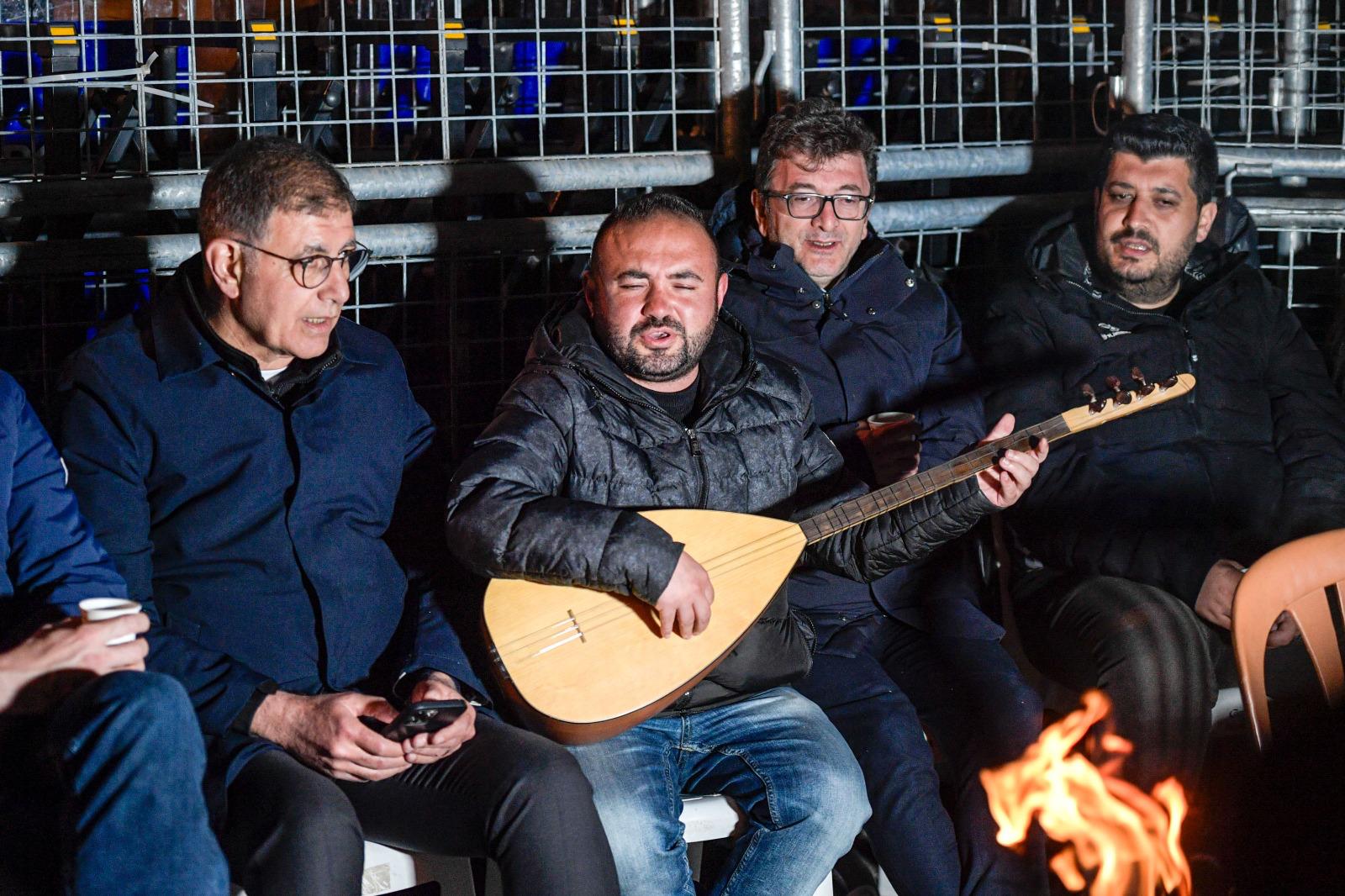 EGEMENLİK - Meslek Fabrikası nöbeti, perşembe gecesi de sürdü. Sabah saatlerine kadar Meslek Fabrikası önünde nöbet tutan İzmir Büyükşehir Belediye Başkanı Dr. Cemil Tugay’a, Cumhuriyet Halk Partisi İzmir İl Başkanı Çağatay Güç, CHP Şanlıurfa Milletvekili Mahmut Tanal, CHP İzmir Milletvekili Yüksel Taşkın ile ilçe belediye başkanları da eşlik etti. Tepecik Müzisyenler Derneği üyeleri ise nöbete seslendirdikleri şarkılarla destek verdi. Soğuk havaya rağmen alandan ayrılmayan katılımcılar, omuz omuza vererek direnişi büyüttü. CHP Şanlıurfa Milletvekili Mahmut Tanal da nöbete destek verdi. Tanal, penseyle polis barikatlarını birbirine bağlayan plastik kelepçeleri kesti. Türkiye sınırlarının bu şekilde korunmadığını ifade ederek uygulamaya tepki gösteren Tanal, polis yetkilileri ile görüşme talebinde bulundu.