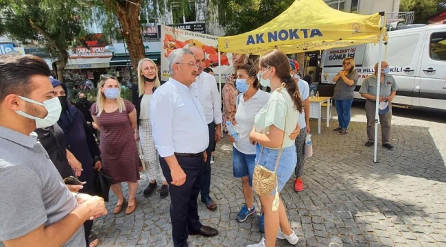 Bornova Meydanı'nda adeta mobil milletvekili ofisine dönüşen minibüsün içinde ve önünde vatandaşlarla buluşan Nasır, burada AK Parti Bornova İlçe Başkanı Veysel Güldoğan ile Bornovalıların sorun ve taleplerini dinledi.