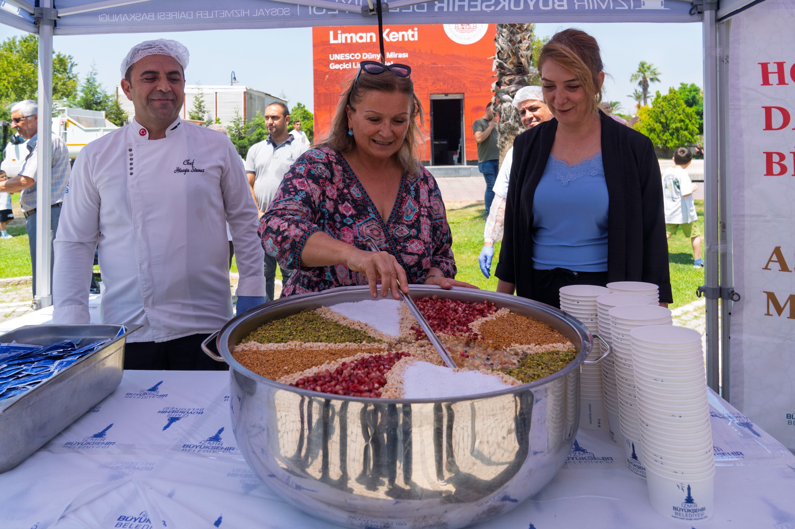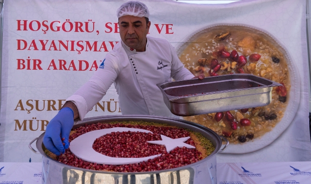EGEMENLİK - İzmir Büyükşehir Belediyesi, birlik, beraberlik ve kardeşlik duygularının pekiştiği, sevgi, hoşgörü ve paylaşmanın simgesi olan Muharrem ayında üç ilçede aşure dağıttı. Sosyal Hizmetler Dairesi Başkanlığı Aşevleri Şube Müdürlüğü tarafından özenle hazırlanan 10 bin kişilik aşure, Konak Atatürk Meydanı, Karşıyaka Vapur İskelesi ve Buca Şirinyer Meydanı’nda yurttaşlara ikram edildi. Konak Atatürk Meydanı’ndaki ilk aşure dağıtımına İzmir Büyükşehir Belediyesi Genel Sekreter Yardımcısı Prof. Dr. Pınar Okyay, İzmir Büyükşehir Belediyesi Sosyal Hizmetler Dairesi Başkanı Ela Hızlı ve Muhtarlık İşleri Dairesi Başkanı Serpil Keskin de katıldı. İzmir Büyükşehir Belediyesi aşçılarının rengarenk meyve ve kuru yemişlerle süsledikleri aşureler yurttaşlara ikram edildi. Vatandaşlar aşure kazanlarında oluşturulan ay yıldızlı Türk bayrağı görüntüsünün fotoğrafını çekti.“Bu hizmeti yapmaktan gurur duyuyoruz”İzmir Büyükşehir Belediyesi Aşevleri Şube Müdürlüğü’nde aşçıbaşı olarak görev yapan Hüseyin Sönmez, “Biz 12 İmamlar orucunda, 12 gün boyunca cemevlerimize ve derneklerimize yemeklerimizi verdik. Şimdi de Muharrem ayında geleneksel hale gelen aşure dağıtımını yapıyoruz. Bizim için çok güzel bir duygu. Vatandaşlarımızla beraber çok güzel zaman geçiriyoruz. Bu hizmeti yapmaktan gurur duyuyoruz. Muharrem ayının insanlarımıza birlik, beraberlik ve hoşgörü getirmesini diliyoruz. İzmir Büyükşehir Belediyesi olarak halkımızla dayanışmaya devam edeceğiz” diye konuştu.Yas-ı Matem orucunda 10 bin kişilik sıcak yemek İzmir Büyükşehir Belediyesi Sosyal Hizmetler Dairesi Başkanlığı, her sene olduğu gibi bu yıl da Muharrem ayında tutulan Yas-ı Matem orucu boyunca 8 cemevi, 3 Alevi derneği ve 1 kültür merkezine 12 günde yaklaşık 10 bin kişilik sıcak yemek ulaştırdı.