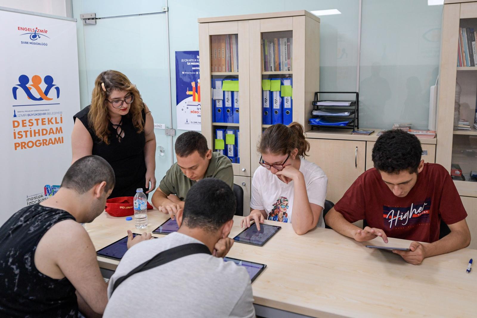 Türkiye’de ilk kez nöroçeşitli bireylere yönelik istihdam ve iş koçluğu hizmeti veren İzmir Büyükşehir Belediyesi Destekli İstihdam Ofisi, özgeçmiş ve iş hayatına hazırlanma, mail atma, iş arkadaşları ve yöneticilerle selamlaşma gibi geniş kapsamlı bir eğitimi kapsayan İş için Nitelikli Kazanım Programı’nın (İŞ İN) 2. grup derslerine devam ediyor. Uygun sektörlerde istihdam edilmek için donanım kazanacak adaylar, yaklaşık iki aylık eğitimin ardından sertifika alarak iş arayışlarına başlayacak.