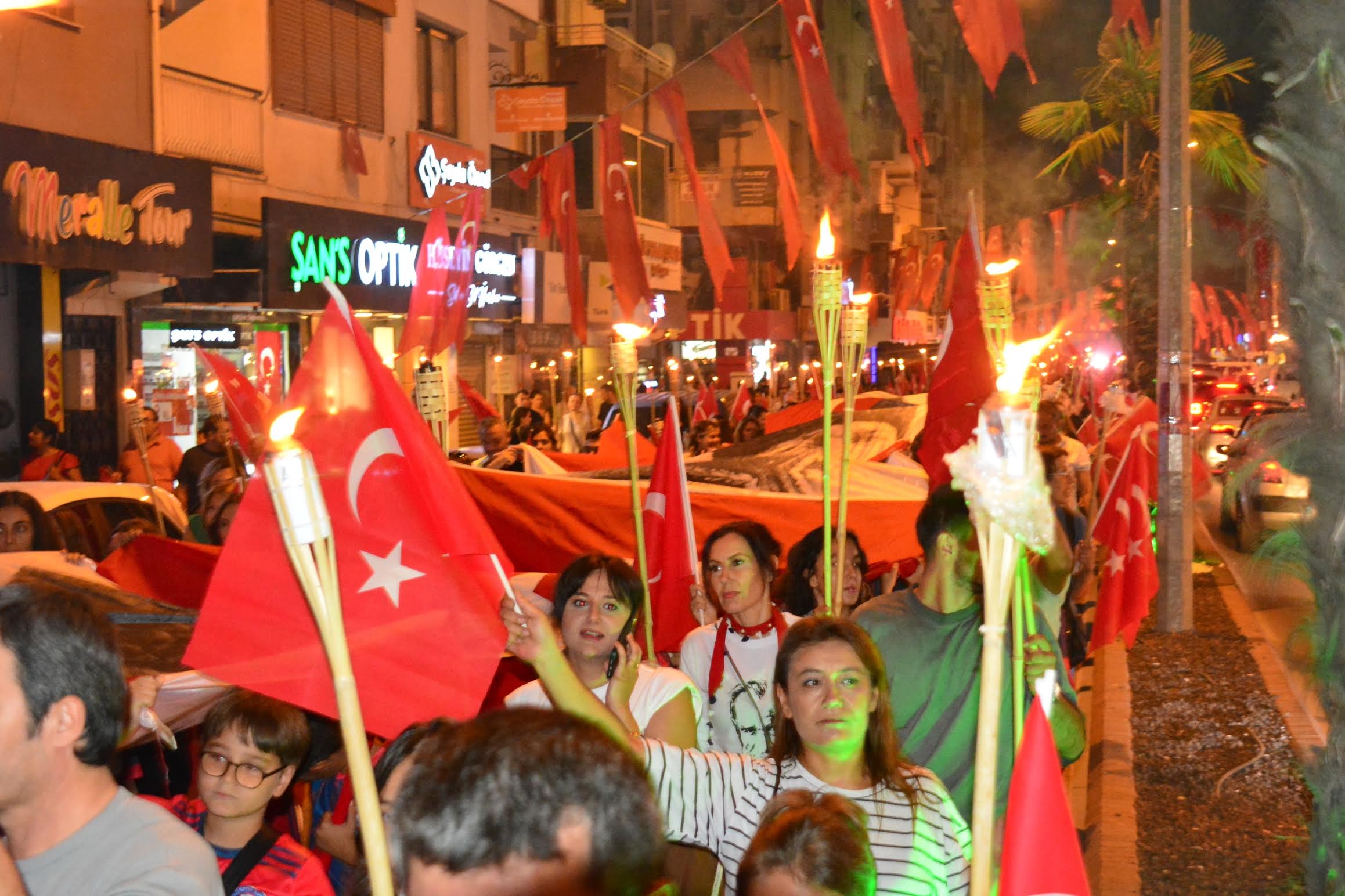 Ödemiş’te ki kutlamalar sabah Hükümet Meydanı önünde yapılan resmi törenle başladı. Fener alayı’nın buluşma noktası yine Hükümet Meydanı önü oldu. İlçe Kaymakamı Hakan Yavuz Erdoğan, Belediye Başkanı Mustafa Turan, protokol üyeleri, siyasi partilerin temsilcileri, sivil toplum örgütleri ve zafer coşkusuna ortak olmak isteyen yüzlerce kişi ellerinde meşaleler ve Türk bayraklarla yürüyüşü gerçekleştirdi. Ödemiş Belediyesi Bandosu eşliğinde söylenen marşlarla Saraçoğlu Caddesi’nde gerçekleştirilen yürüyüşe, vatandaşlar balkonlarından ve iş yerlerinden katılım sağladı.