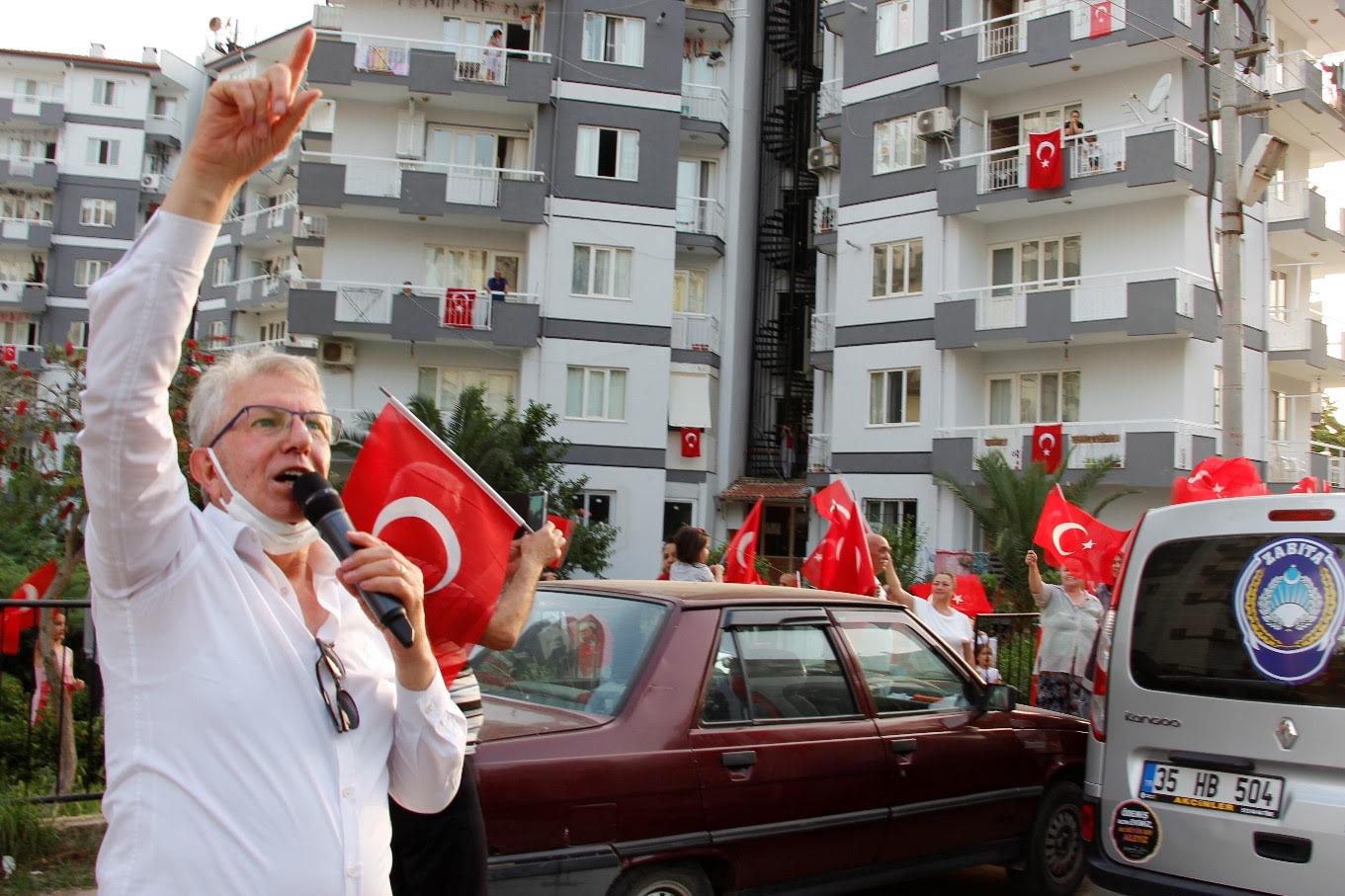 Başkan Eriş, gençlere Türk Bayrağı, Atatürk portreli tişörtler ve Nutuk armağan etti. Saatler 19.19’u gösterdiğinde Ödemiş’te de önce İstiklal Marşı ardından Gençlik Marşı hep bir ağızdan okundu.