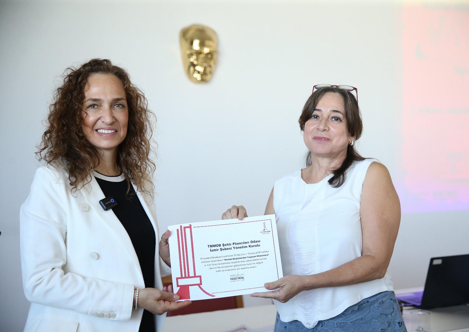 ÜÇ MAHALLEDE ÇALIŞMA YAPILDIDonanmacı, İmbatlı ve Şemikler mahallelerinde belirlenen kentsel boşlukların yaşayan mekanlara dönüştürülebilmesi için çalışmalar yürütüldü. Öğrenciler, bu hedef doğrultusunda disiplinler arası çalışmalarla kamusal alanların kimliğini ve dayanıklılığını güçlendirmeye yönelik öneriler geliştirdi. Program boyunca mekânsal kimlik ve hafızayı güçlendirmeye, dirençli kentler için peyzaj stratejileri oluşturmaya da odaklanıldı. Üç haftalık eğitim program, Çatı Bostanlı’de düzenlenen törenle sona erdi. Karşıyaka Belediye Başkanı Yıldız Ünsal, belediye bürokratları, akademisyenler ve meslek odalarından temsilcilerin katıldığı törende kürsüye çıkan öğrenciler, yaptıkları çalışmalara dair sunumlar gerçekleştirdi. Ayrıca, önümüzdeki günlerde Galeri Alt’ta açılacak sergiyle gençlerin çalışmaları Karşıyakalılar ile paylaşılacak.