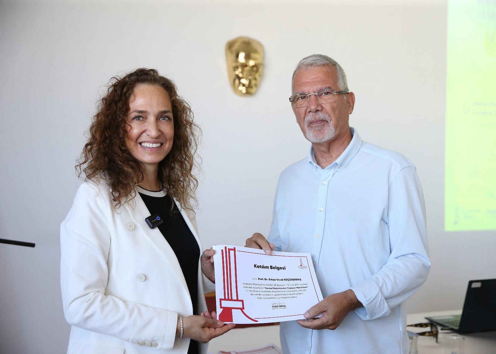 “GENÇLER BİZE İLHAM OLACAK”Belediye Başkanı Yıldız Ünsal “Bugün burada, Karşıyaka’nın geleceğine ışık tutan bir yolculuğun son durağında buluşmanın gururunu yaşıyoruz. Dördüncü kez düzenlediğimiz Öğrenci Yaz Okulu, yalnızca bir eğitim programı değil; aynı zamanda kentimizin kamusal alanlarına dair ortak hayallerimizin filizlendiği bir platform oldu. Siz gençlerin yaratıcı gücü, disiplinler arası bakış açısı ve sahaya taşıdığı vizyon bizlere umut verdi. Üç hafta boyunca yürüttüğünüz çalışmalar, Karşıyaka’nın mekânsal dönüşümüne ilham olacak nitelikte. Her bir öneriniz, kentimizin daha yaşanabilir, daha kapsayıcı bir geleceğe doğru ilerlemesinde yol gösterici olacak. Bu süreci mümkün kılan tüm üniversitelerimize ve meslek odalarımıza teşekkür ediyorum. Ama en büyük teşekkürü siz gençlere borçluyuz. Çünkü biz biliyoruz ki; her değişimin gerçek mimarı sizlersiniz. Karşıyaka Belediyesi olarak, gençlerin fikirlerine kulak vermeye, birlikte üretmeye ve hayal ettiğimiz Karşıyaka’yı sizlerle inşa etmeye devam edeceğiz” diye konuştu.