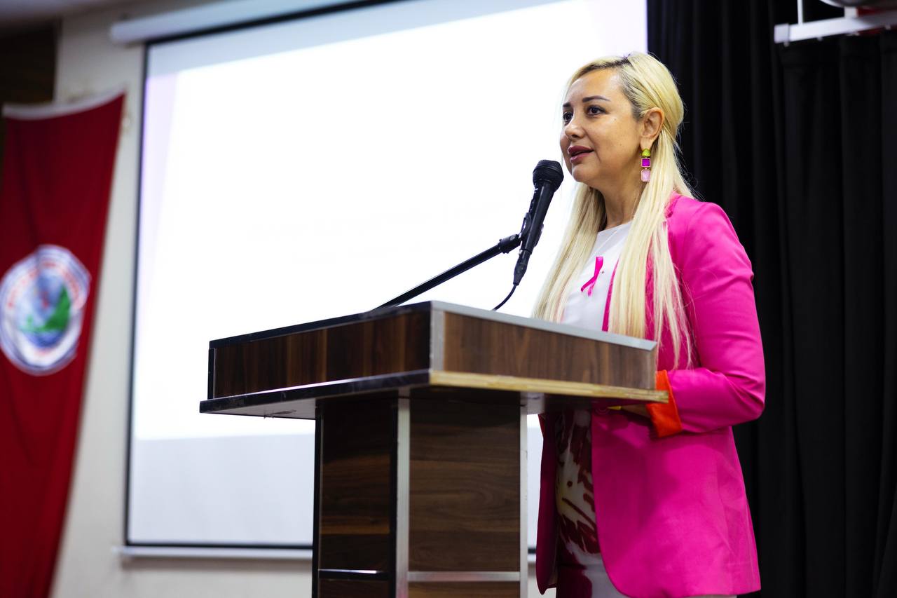 Balçova Belediyesi Engelli Merkezi Konferans Salonu’nda düzenlenen programda moderatörlüğü SUKANDER Yönetim Kurulu Başkanı Yeliz Hastürk üstlendi. Konuşmacılar Radyoloji Uzmanı Dr. Müge Afşar ve Genel Cerrahi Uzmanı Dr. Özhan Çetindağ, meme kanserinde erken tanı, tedavi süreçleri ve doğru bilgilendirmenin önemine dair değerli bilgiler paylaştı.