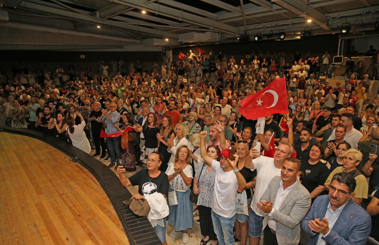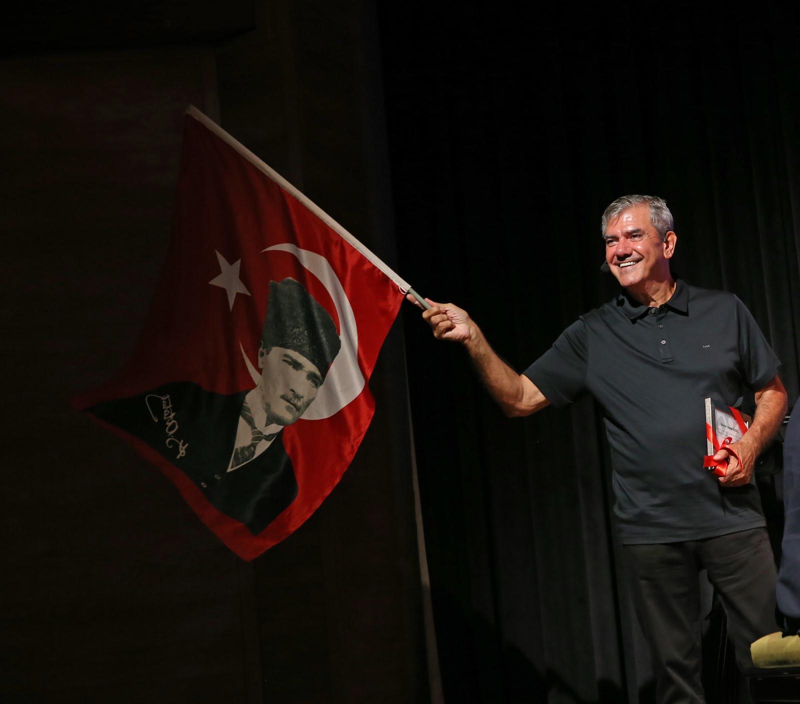 “O BAYRAK KARŞIYAKA’DA OLMALI”Usta gazeteci Korcan Karar, piyano performansıyla geceye duygusal bir atmosfer de kattı. Program boyunca Yılmaz Özdil’in anlattığı tarihi anekdotlara; İzmir’in Kavakları, Yiğidim Aslanım ve Gençlik Marşı gibi eserlerle eşlik eden Karar, izleyicilere unutulmaz anlar yaşattı. Korcan Karar, 18 Eylül 1922’de Gazi Mustafa Kemal Atatürk’ün Karşıyaka’daki İplikçizade Köşkü’ne gelişinde yaşanan tarihi olayı da hatırlatarak, o gün Atatürk’ün yere serilen Yunan bayrağını çiğnemeyi reddettiğini ve bayrağın kaldırılmasını istediğini anlattı. Söz konusu bayrağın, Karşıyaka tarihiyle özdeşleştiğini belirten Karar, ilçede sergilenmesi için çağrıda bulundu; Başkan Yıldız Ünsal da elinden geleni yapacağını ve sürecin takipçisi olacağını söyledi.