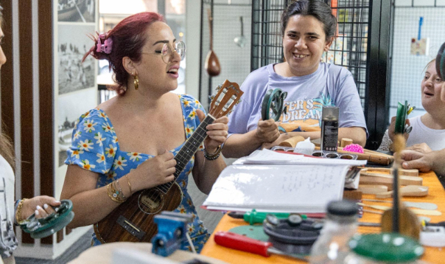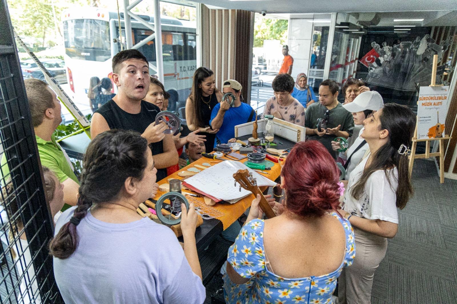 ESERLER İLGİYLE İNCELENDİBu kapsamda; merkez öğrencileri ve velileri, Galeri Alt’ta açılan Sürdürülebilir Müzik Aletleri Sergisi’ni ziyaret etti. Karşıyaka Belediyesi'ne bağlı Mahmure Handan Hanım Müzik Aletleri Yapım Atölyesi katılımcıları tarafından atık ve geri dönüştürülmüş malzemelerle hazırlanan eserleri ilgiyle inceleyen özel bireyler, müziğin birleştirici gücüyle keyifli anlar yaşadı. Atölye eğitmeni Burçin Bayar Babaoğlu’nun sunduğu mini müzik dinletisi de sergi ziyaretine renk kattı. Doğaya duyarlı yaklaşımı ve yaratıcı üretim anlayışıyla dikkat çeken sergi, 15 Ağustos’a kadar Karşıyaka Belediyesi ana hizmet binası giriş katında ziyaret edilebilecek.