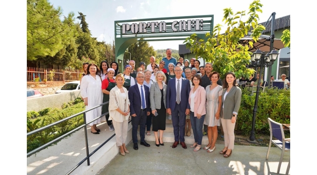 Gaziemir Belediye Başkanı Halil Arda, Porta Gaziemir’in ilk yılını, çalışanlarla birlikte pasta keserek kutladı. Porta Gaziemir’in mutfağında çalışan kooperatif üyesi kadınlar Başkan Halil Arda’ya teşekkür etmek için plaket verdi. Plaketi kadınları temsilen Porta Gaziemir’in şefi Erdoğan Atabay sundu.