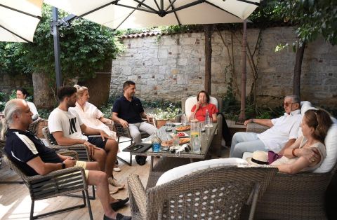 Mustafa Rahmi Koç’un nazik ziyaretinden dolayı büyük bir mutluluk duyduğunu ifade den Kuşadası Belediye Başkanı Ömer Günel, Fosil ve Mineral Müzesi ve Kervansaray ile ilgili yürütülen çalışmalarla ilgili olarak bilgi aktardı. Kuşadası’nı kültür ve sanatla anılan bir kent haline getirmek istediklerini ifade eden Başkan Ömer Günel “Ziyaretiniz bizim için çok değerli. Sizin kadar kültüre ve sanata önem veren bir iş insanının tecrübelerinden istifade etmek isteriz” dedi.![]()