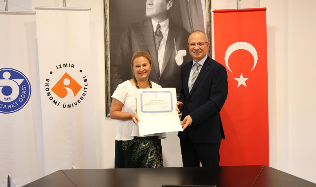 ‘Sağlıklı Kampüs’ için art arda etkili adımlar atan İEÜ, bu alandaki başarısını da ‘Beslenme Dostu ve Fiziksel Aktiviteyi Destekleyen İş Yeri’ belgesini alarak taçlandırdı. İEÜ Rektör Yardımcısı Prof. Dr. Aslı Ceylan Öner, üniversitenin mütevelli heyet salonunda gerçekleşen törende, bu prestijli belgeyi İzmir İl Sağlık Müdürlüğü Halk Sağlığı Hizmetleri Başkan Yardımcısı Dr. Metin Kızılelma’nın elinden aldı.