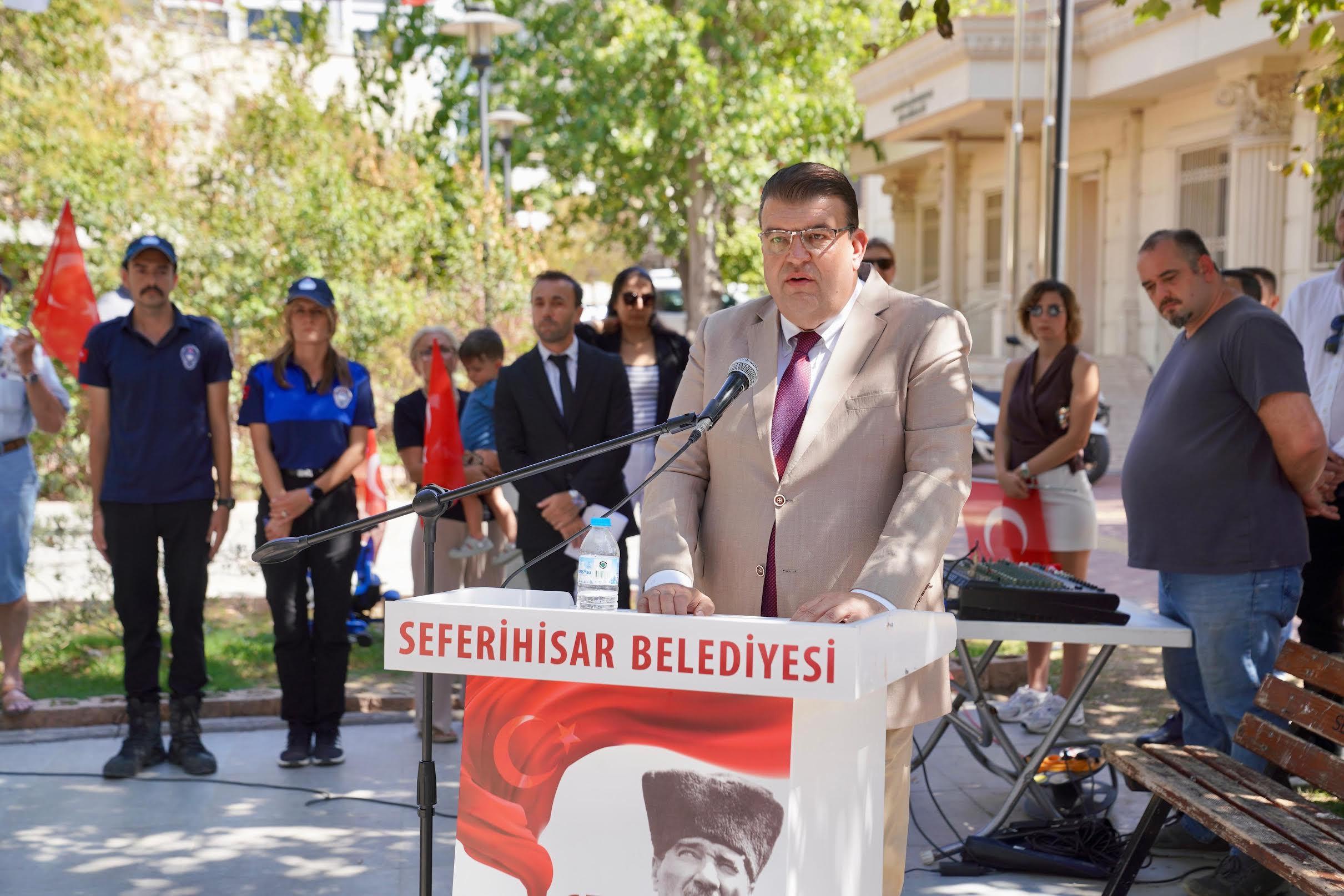 EGEMENLİK - Seferihisar’ın düşman işgalinden kurtuluşunun 103. yıl dönümü, Cumhuriyet Meydanı’nda düzenlenen törenle kutlandı. Programa Seferihisar Kaymakamı Mehmet Şerif Olçaş, Garnizon Komutanı Albay Murat Kuzucu, Seferihisar Belediye Başkanı İsmail Yetişkin, Belediye Başkan Yardımcısı İnanç Karabulut, siyasi parti ve sivil toplum kuruluşlarının temsilcileri ile çok sayıda vatandaş katıldı.Tören, Seferihisar Belediye Bandosu eşliğinde saygı duruşu ve İstiklal Marşı’nın okunmasıyla başladı. Ardından Atatürk Anıtı’na çelenk sunuldu.Belediye Başkanı İsmail Yetişkin törende yaptığı konuşmada, geçtiğimiz günlerde Balçova’da şehit olan kahraman polisleri rahmetle andı. Yetişkin, “Şehitlerimizin aziz hatırası önünde saygıyla eğiliyorum, ailelerine, emniyet teşkilatımıza ve milletimize başsağlığı diliyor, yaralı polislerimize acil şifalar temenni ediyorum” dedi.Yetişkin konuşmasının devamında, birlik ve beraberlik mesajı vererek, “Seferihisar halkı, 103 yıl önce olduğu gibi bugün de Cumhuriyetimizin, bağımsızlığımızın ve özgürlüğümüzün teminatıdır. Bu bayrak asla yere inmeyecek, bu millet asla boyun eğmeyecek. Cumhuriyetimiz, bağımsızlığımız ve özgürlüğümüz sonsuza dek var olacaktır” dedi.