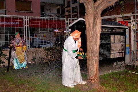 Program kapsamında, ilk olarak Bornova Belediyesi Hobi ve Beceri Edindirme Kurs Merkezi bahçesinde yer alan hastalıklı bir ağaç, Tahtacı Alevi geleneklerine uygun şekilde kesildi. Kesimin ardından doğaya saygının simgesi olarak üç yeni fidan dikilerek yaşamın sürekliliğine dikkat çekildi.