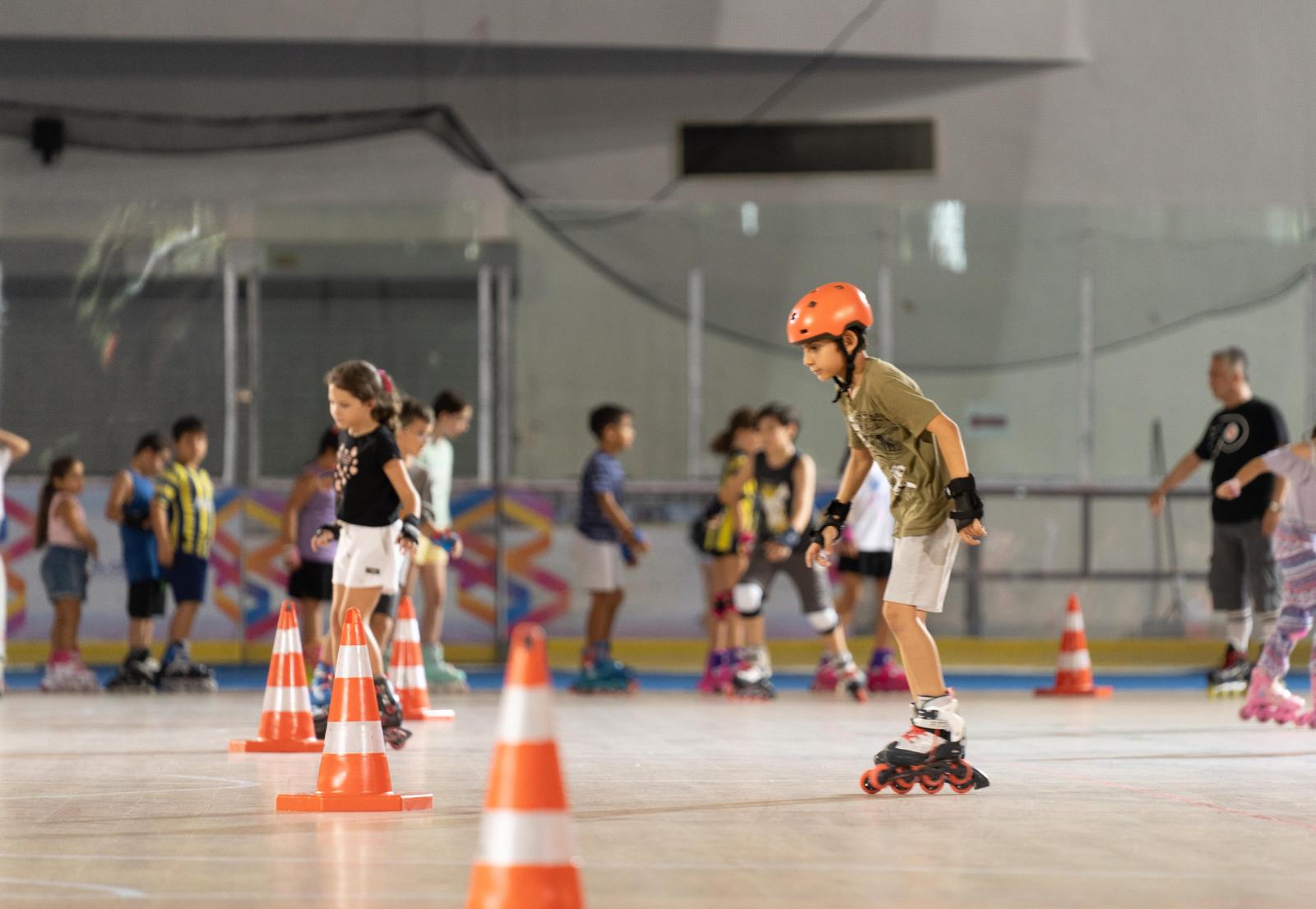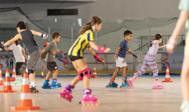 Yazın farklı spor branşlarında da hizmet sunulabilmesi amacıyla Bornova'daki Âşık Veysel Rekreasyon Alanı'nda bulunan Buz Sporları Salonu'nun zeminini yenileyen İzmir Büyükşehir Belediyesi’nin bu yıl ilk kez hayata geçirdiği tekerlekli paten kursları sürüyor. Çocuklar da veliler de eğitimden memnun.