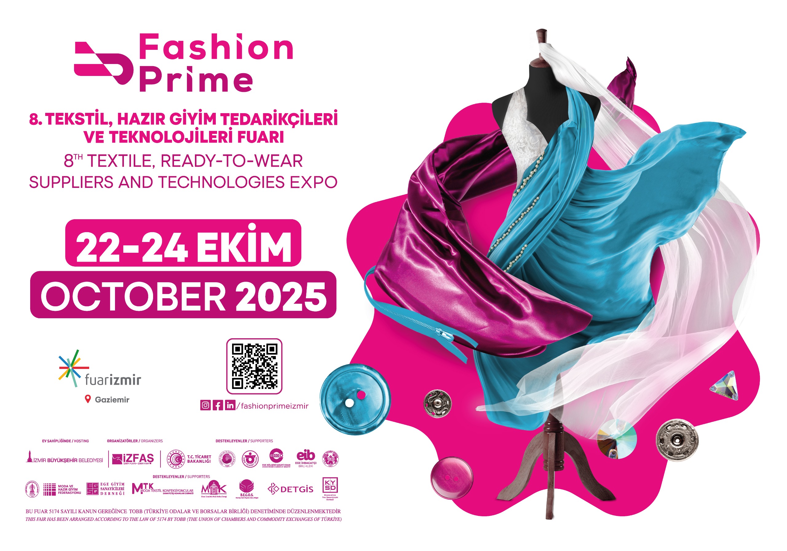 Hazır giyim sektörünün buluşma noktası ve profesyonellerin merakla takip ettiği Fashion Prime-8. Tekstil, Hazır Giyim Tedarikçileri ve Teknolojileri Fuarı, 22-24 Ekim 2025 tarihleri arasında kapılarını açacak. Türkiye hazır giyim ve konfeksiyon sektörünün ihracatını destekleyen fuara 2026 yılı kumaş koleksiyonlarının ilk kez sergileneceği defileler renk katacak.