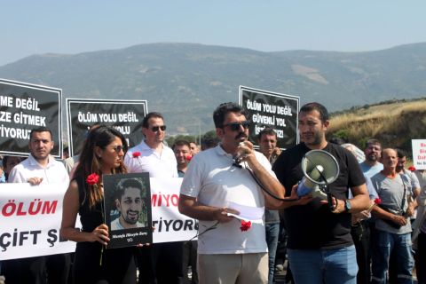 EGEMENLİK - Tire Organize Sanayi Bölgesi (TOSBİ) 2 No’lu giriş kapısı yakınında önceki sabah saatlerinde meydana gelen kazada, sanayi bölgesindeki işine gitmekte olan Mustafa Hüseyin Barış yaşamını yitirdi. Aynı motosiklette bulunan Turgay Evcimik ise yaralanarak hastaneye kaldırıldı.Kazanın ardından, 20 yıldır çözüm bekleyen yol sorununa dikkat çekmek isteyen TOSBİ çalışanları, aynı güzergahta akşam saatlerinde eylem düzenledi. Sanayi bölgesindeki 105 fabrikada çalışan binlerce işçiyi temsil eden katılımcılar, “Biz ölüme değil işimize gitmek istiyoruz” diyerek bölünmüş yol talebini yineledi.