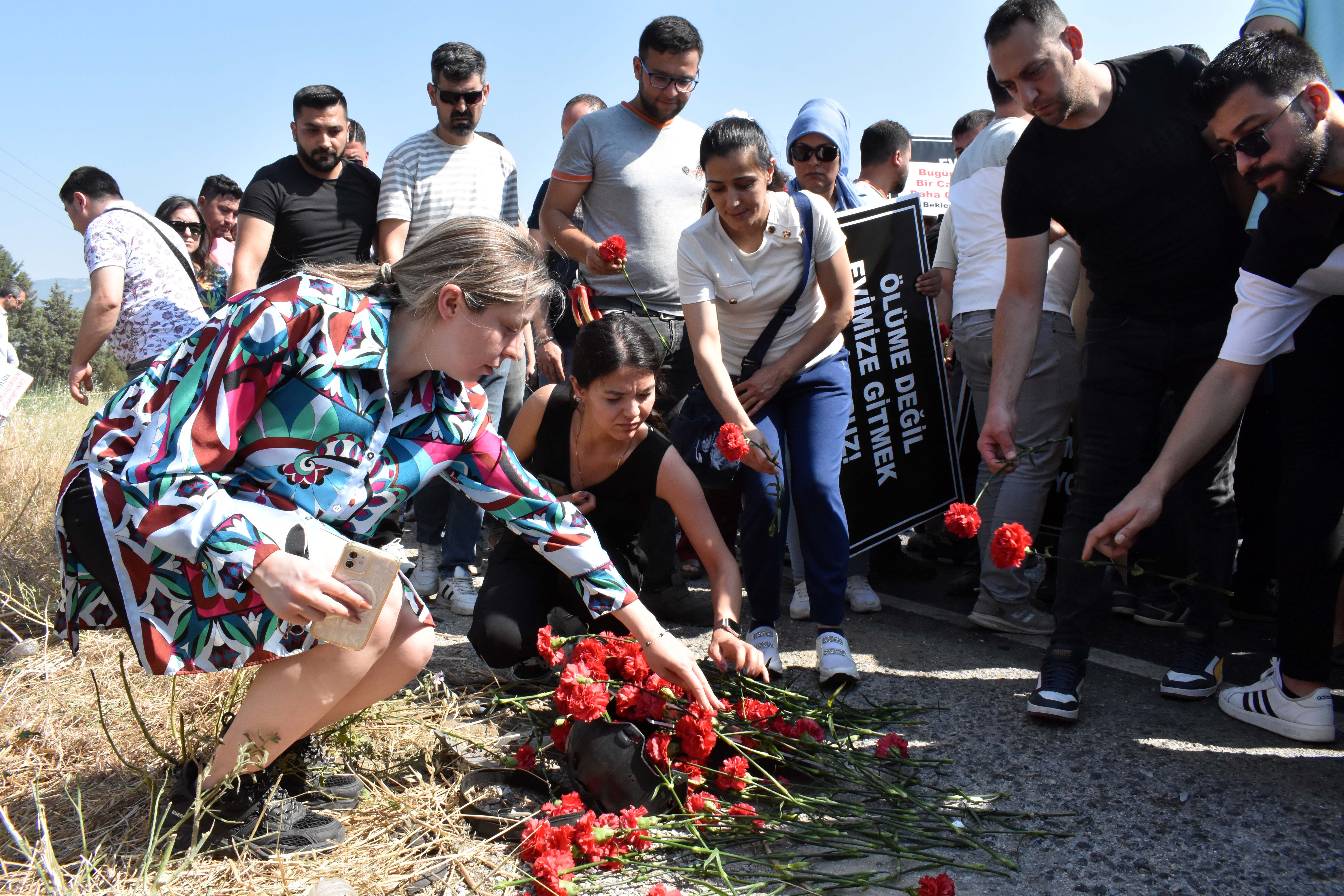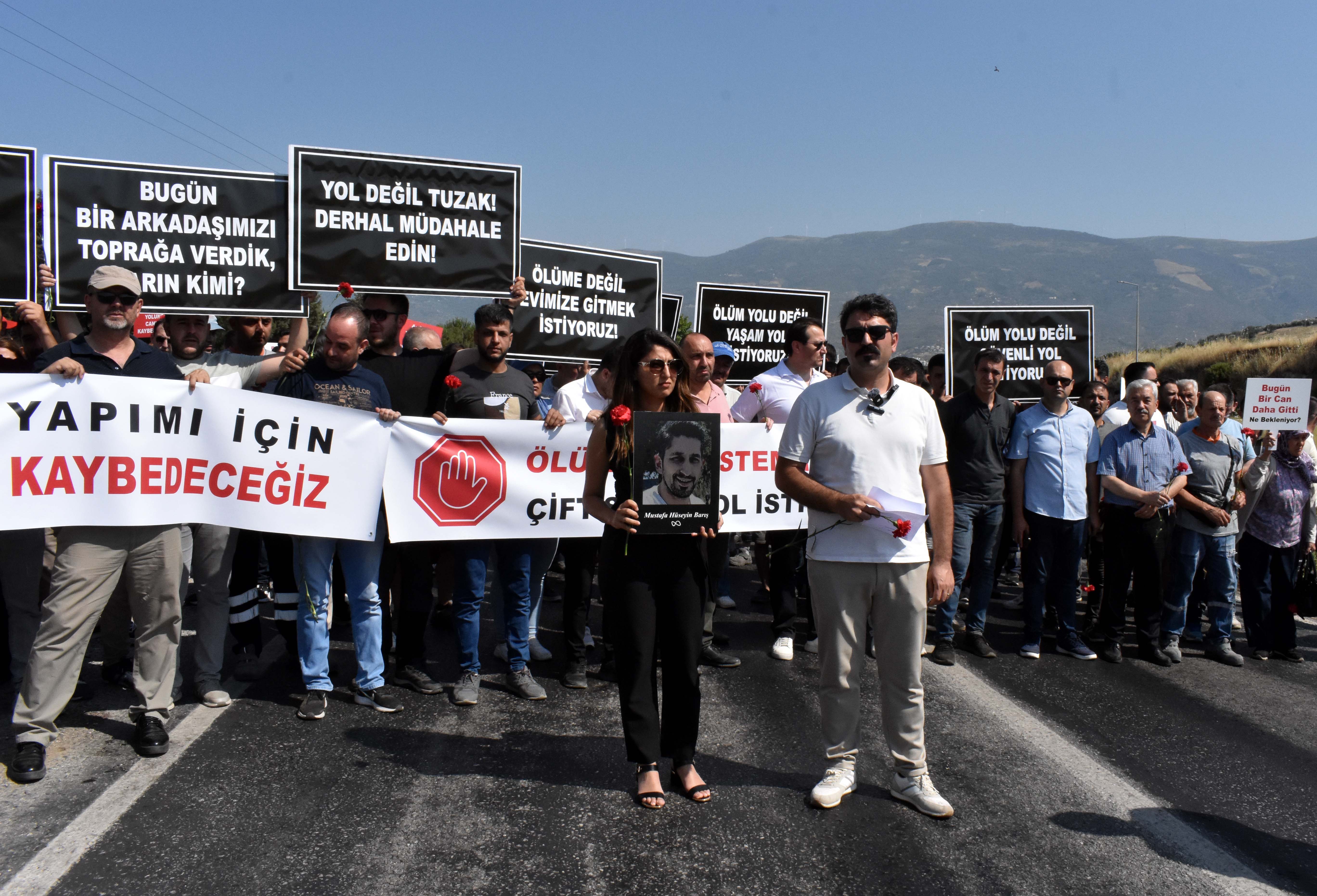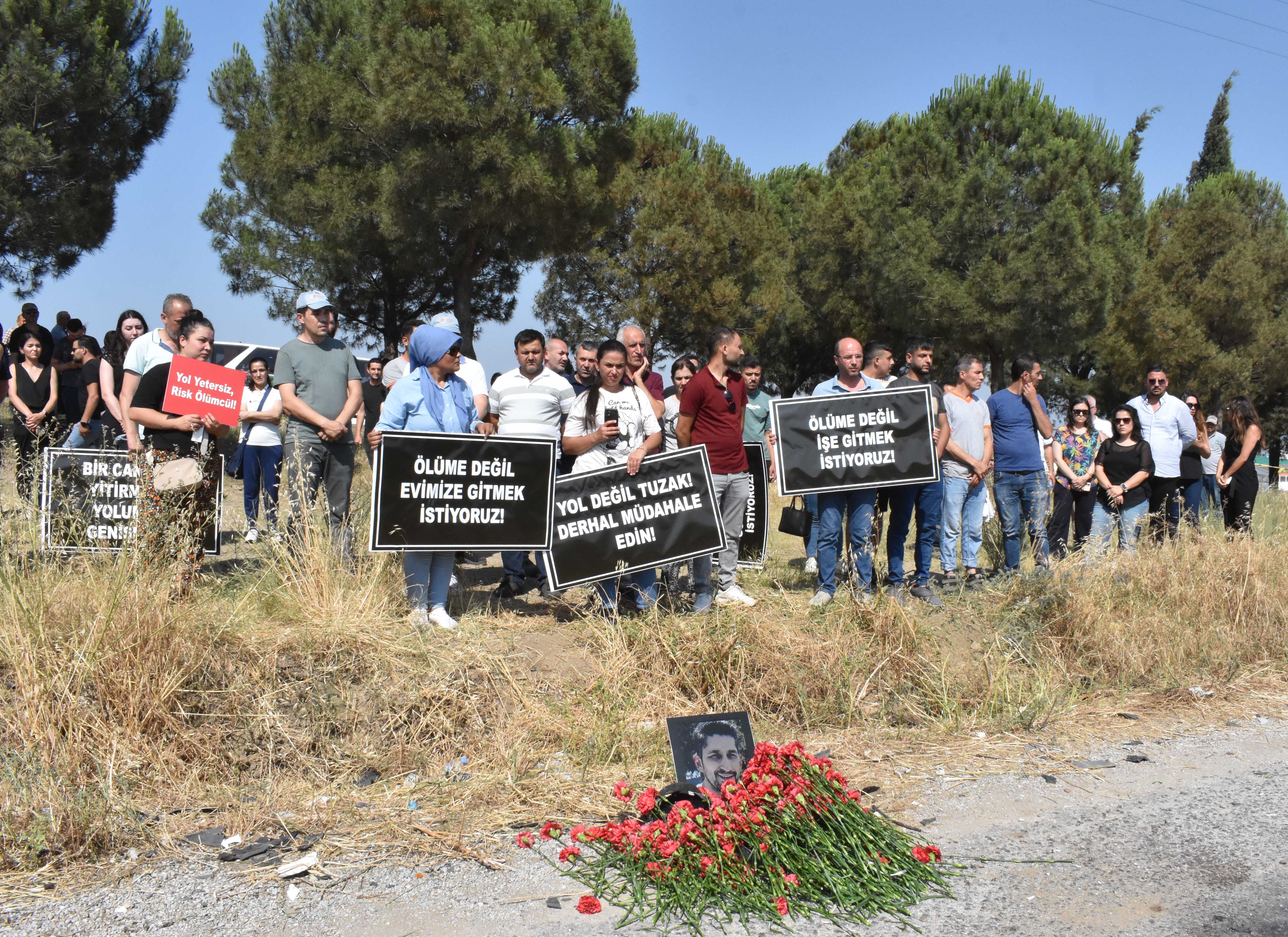 7500 ÇALIŞAN BU YOLU KULLANIYORSanayiciler adına konuşan Metin Akdaş ise, yaşanan acının yıllardır süren ihmallerin sonucu olduğunu öne sürdü. Akdaş “Bu yol her geçen gün daha da riskli hale geliyor. Her sabah işe giden çalışanlarımız bir daha dönüp dönemeyeceklerini bilmiyor. Sanayi bölgesi olarak 2004 yılından bu yana Karayolları’na, onaylı proje çerçevesinde gerekli başvuruları defalarca yaptık. Ancak 20 yıldır tek bir metre bölünmüş yol yapılmadı. 7 bin 500 çalışanın ve 105 tesisin güvenli ulaşımı, hâlâ dar ve kontrolsüz bir yoldan sağlanıyor” diye konuştu. Daha sonra katılımcılar, çalışma arkadaşları Mustafa Hüseyin Barış anısına kazanın olduğu yere karanfiller bıraktı.