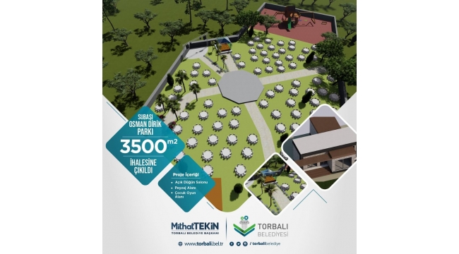 Toplamda 3 bin 500 metrekarelik alanı kapsayan, açık düğün salonu, peyzaj alanı ve çocuk oyun alanının yer alacağı proje için ihale gerçekleşti. Osman Dirik Parkı yapılacak çalışmanın ardından yeni yüzüyle Subaşı ve bölge halkına hizmet verecek olan tesis, bölgede de büyük ihtiyacı gidermiş olacak. Hem şık bir kır düğün salonuna hem de sosyal yaşam alanına kavuşacak olan Subaşı halkına verdiği sözü tutan Torbalı Belediye Başkanı Mithat Tekin, “Torbalı genelinde hedeflediğimiz projeleri bir bir hayata geçiriyoruz. Subaşı’da daha önce belediye hizmet binamızın bünyesinde düğün salonu bulunuyordu. Ancak depreme dayanıksız olduğu için binayı yıkmıştık. Bölgede böyle bir tesis talepten çok zorunluluktu. Biz de çalışmalarımızı tamamlayıp, ihaleye çıktık. Çok yakında Subaşı, çok şık tesisine kavuşacak” ifadelerini kullandı.