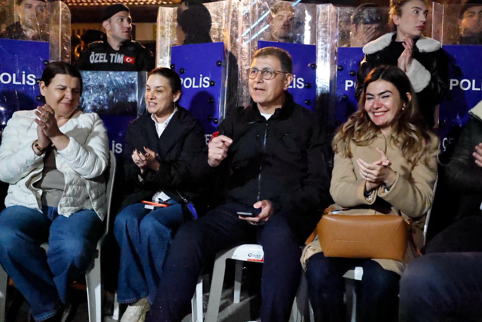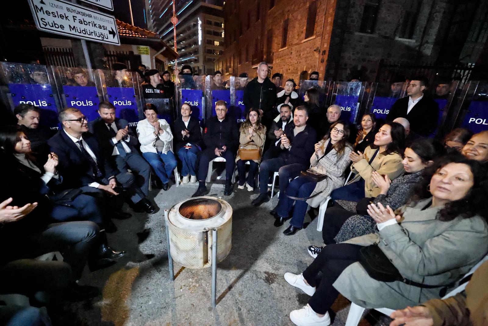 İzmir Büyükşehir Belediye Başkanı Dr. Cemil Tugay, Vakıflar Genel Müdürlüğü’nün el koyduğu Meslek Fabrikası binası önünde gece boyunca sürdürdüğü nöbette, yaşanan sürece “tümüyle haksız” diyerek tepki gösterdi. Tugay, kararlı duruşun süreceğini vurgulayarak daha fazla destek çağrısı yaptı ve “Gerekirse tek başıma da devam edeceğim” dedi.