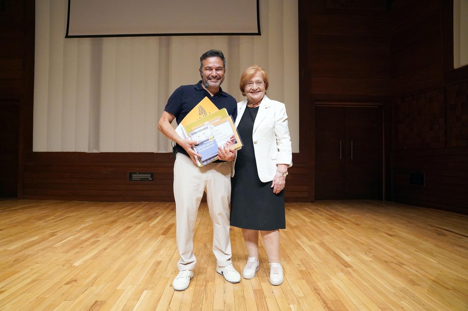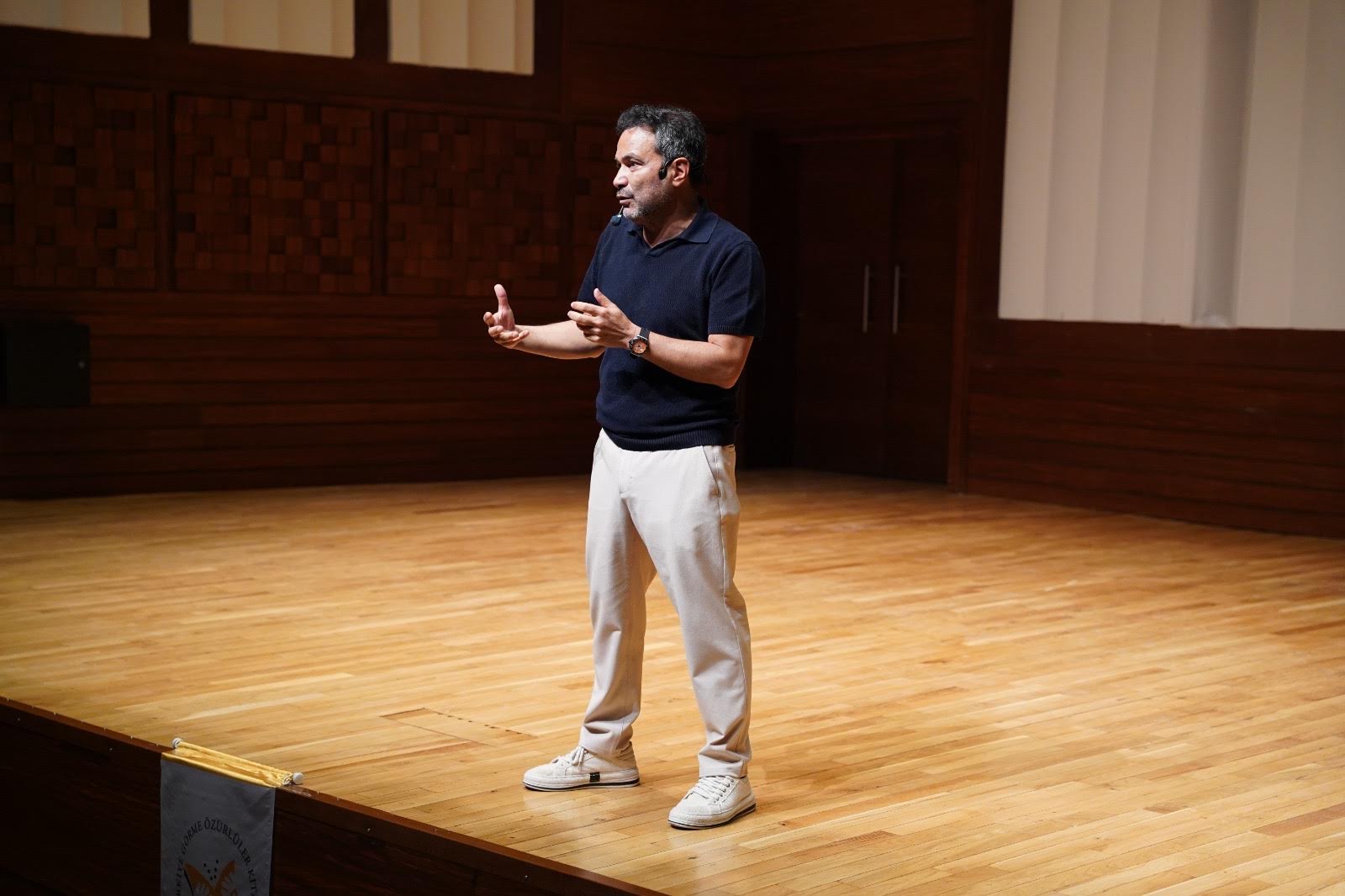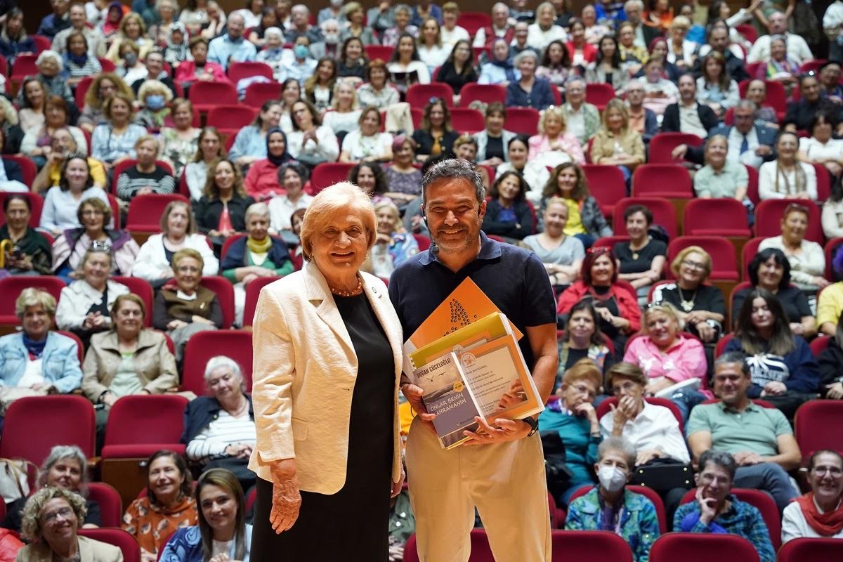 Eğitimin ve kişiye dokunmanın değeri üzerine örneklerle çok keyifli bir konuşma gerçekleştiren Ahmet Şerif İzgören’e TÜRGÖK Yönetim Kurulu Başkanı Tülay Yazgan desteği için teşekkür ederek, adına kabartma olarak basılan kendi kitabı “Şu Hortumlu dünyada fil yalnız bir hayvandır”ın Braille baskısını takdim etti.