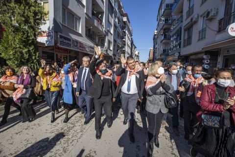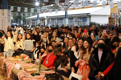 Eşsiz sesiyle Seferihisarlıların coşkusuna coşku katan Merve Özbey kapalı pazar yerinden adeta rüzgar gibi geçti.