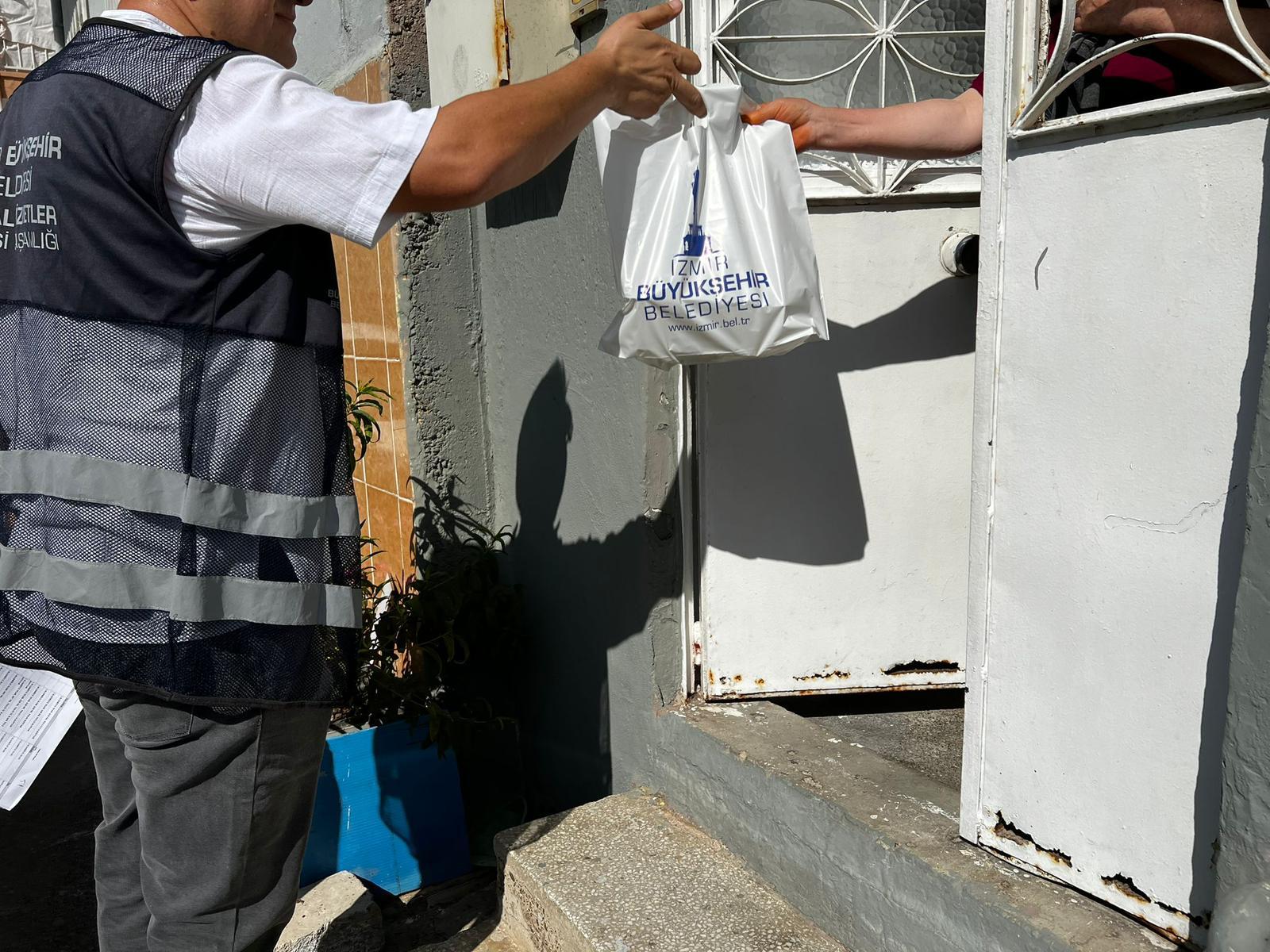 EGEMENLİK - İzmir Büyükşehir Belediyesi, hem üreticiyi hem de ihtiyaç sahibi vatandaşları desteklemeyi sürdürüyor. Sosyal destek programı kapsamında yerel üreticilerden 2 bin kilogram taze incir satın alındı ve İzmir Büyükşehir Belediyesi Sosyal Yardım Takip Sistemi’nde (SYTS) kayıtlı İzmirlilere ulaştırıldı. Tek tek haneleri dolaşan İzmir Büyükşehir Belediyesi ekipleri özenle hazırlanan incir paketlerini 2 bin aileye teslim etti.