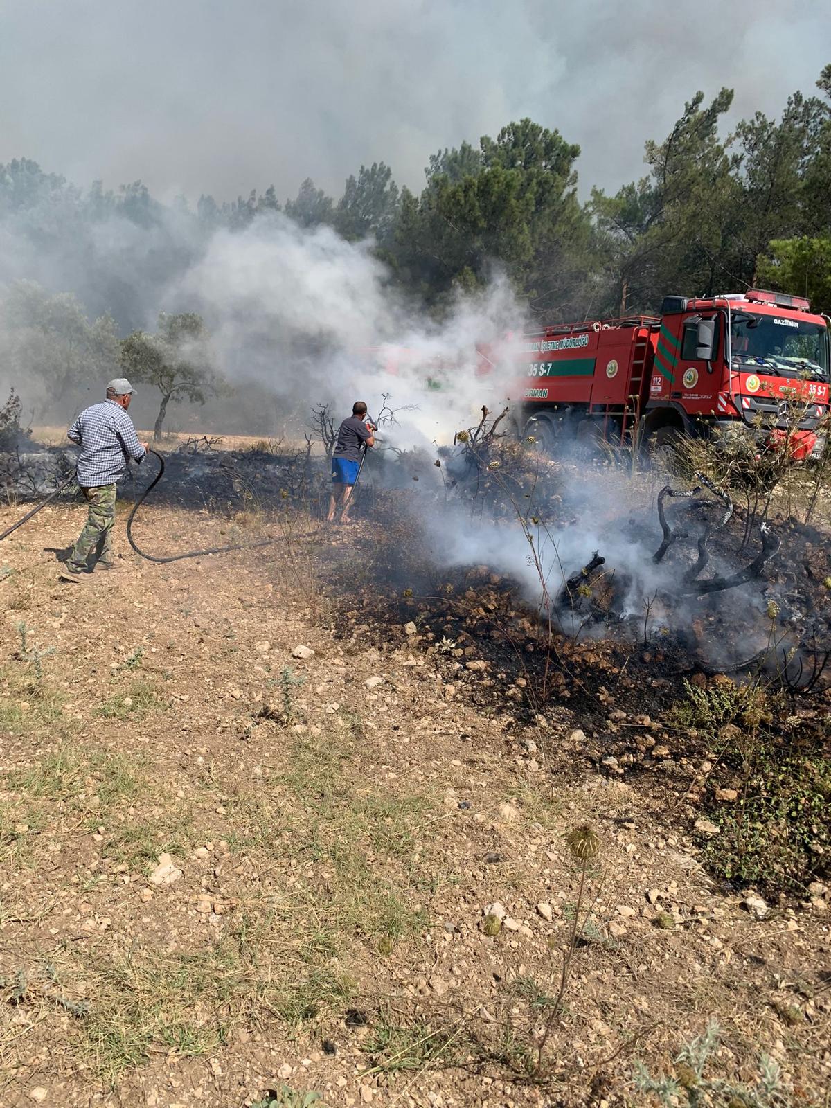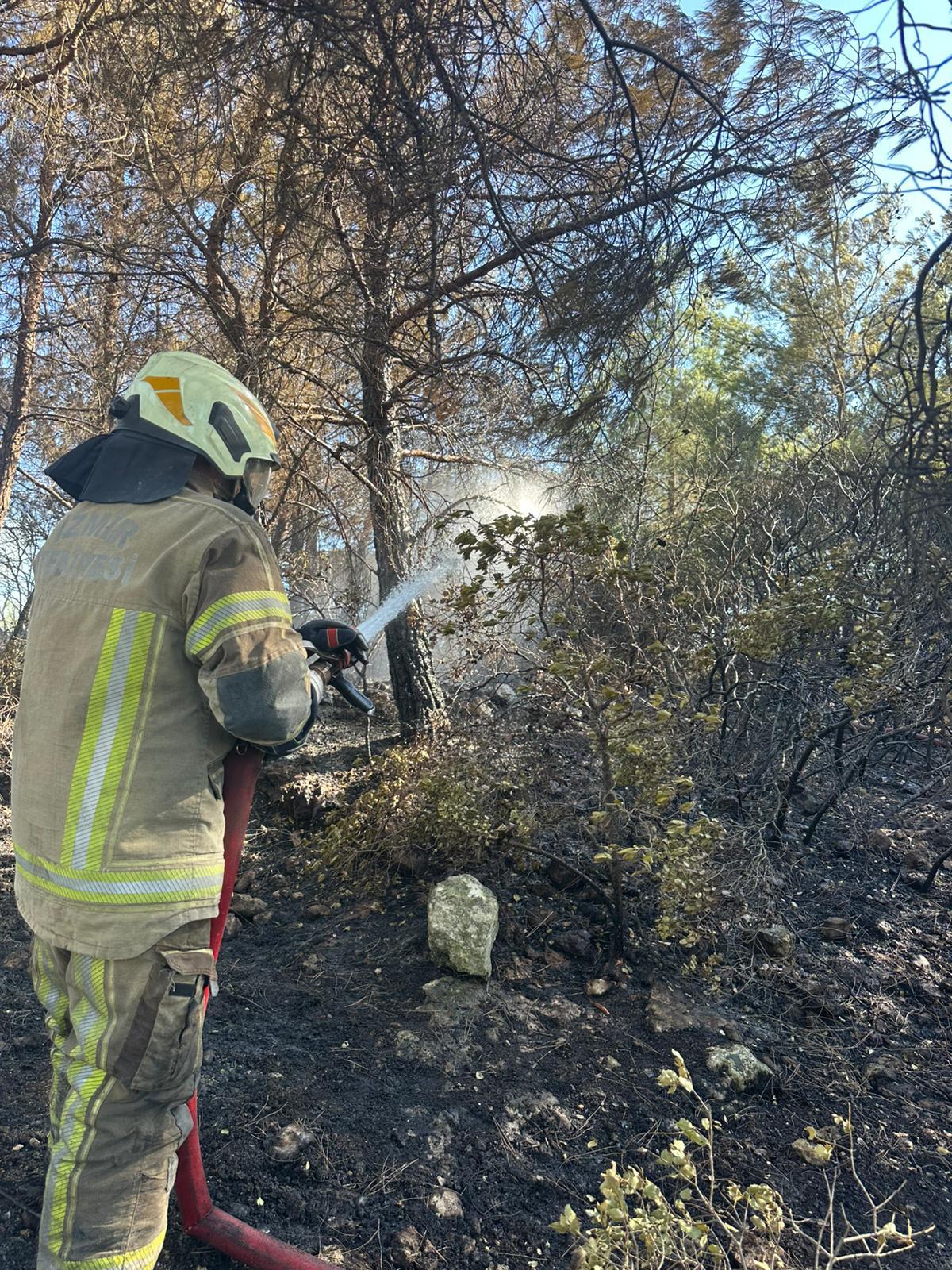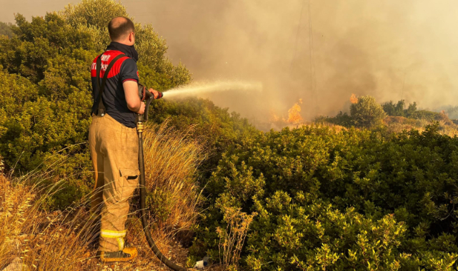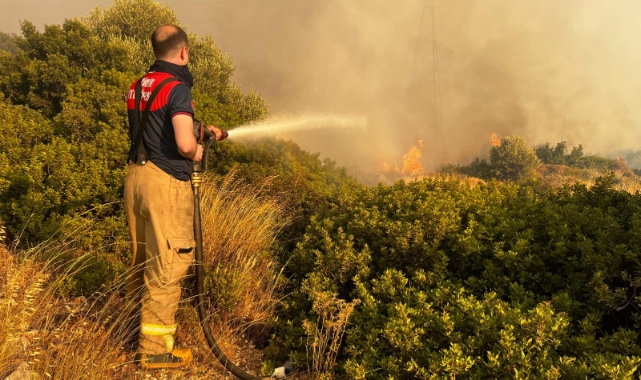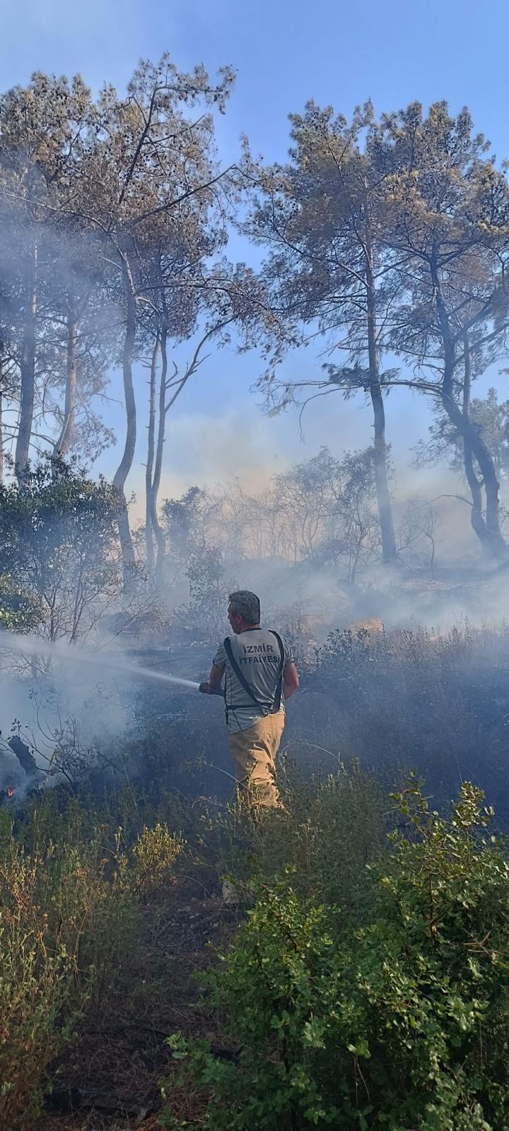 EGEMENLİK - İzmir Büyükşehir Belediyesi İtfaiye Dairesi Başkanlığı ile İzmir Orman Bölge Müdürlüğü ekipleri, Urla Camiatik Mahallesi Reyhan Sokük üzerinde 15.50'de başlayan orman yangınını kontrol altına almak için seferber oldu. Havadan ve karadan müdahalenin sürdüğü yangında İzmir İtfaiyesi sahada 5 itfaiye aracı ve 13 personel ile çalışıyor. İZSU'ya ait 4, İzmir Büyükşehir Belediyesi birimlerinden 7 ve Urla Belediyesi'ne ait 2 su tankerinin yanı sıra, İzmir Büyükşehir Belediyesi'nin yangınlarda ilk müdahaleyi sağlamak için Ovacık ve Bademler Mahallesi'ne verdiği 2 yangın söndürme tankeri ile birlikte gönüllü ekibi de sahada yer alıyor. Orman Bölge Müdürlüğü ise çok sayıda yer ekibinin yanı sıra havadan 4 helikopter ve 2 yangın söndürme uçağı ile yangını kontrol altına almaya çalışıyor.