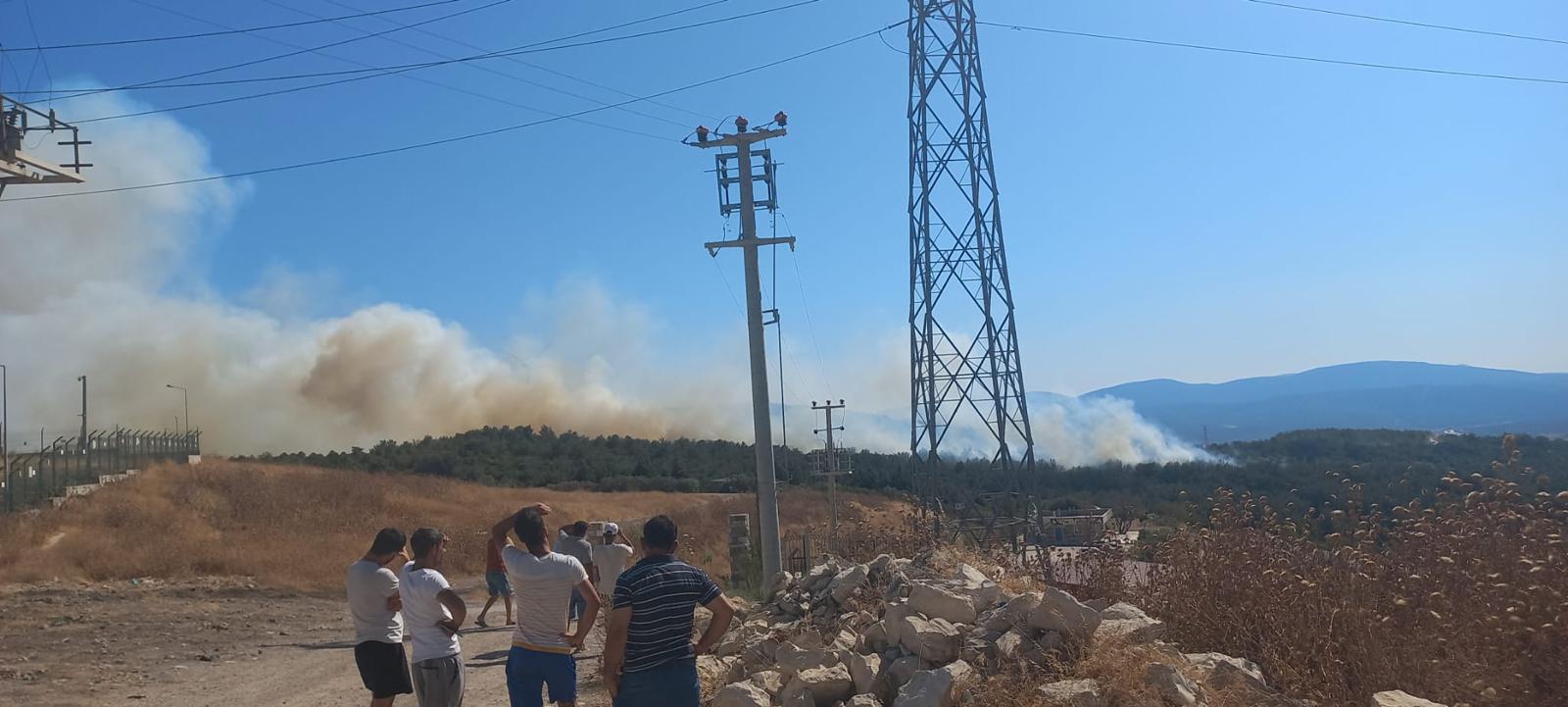 Urla Camiatik Mahallesi ormanlık alanda çıkan yangına müdahale sürüyor