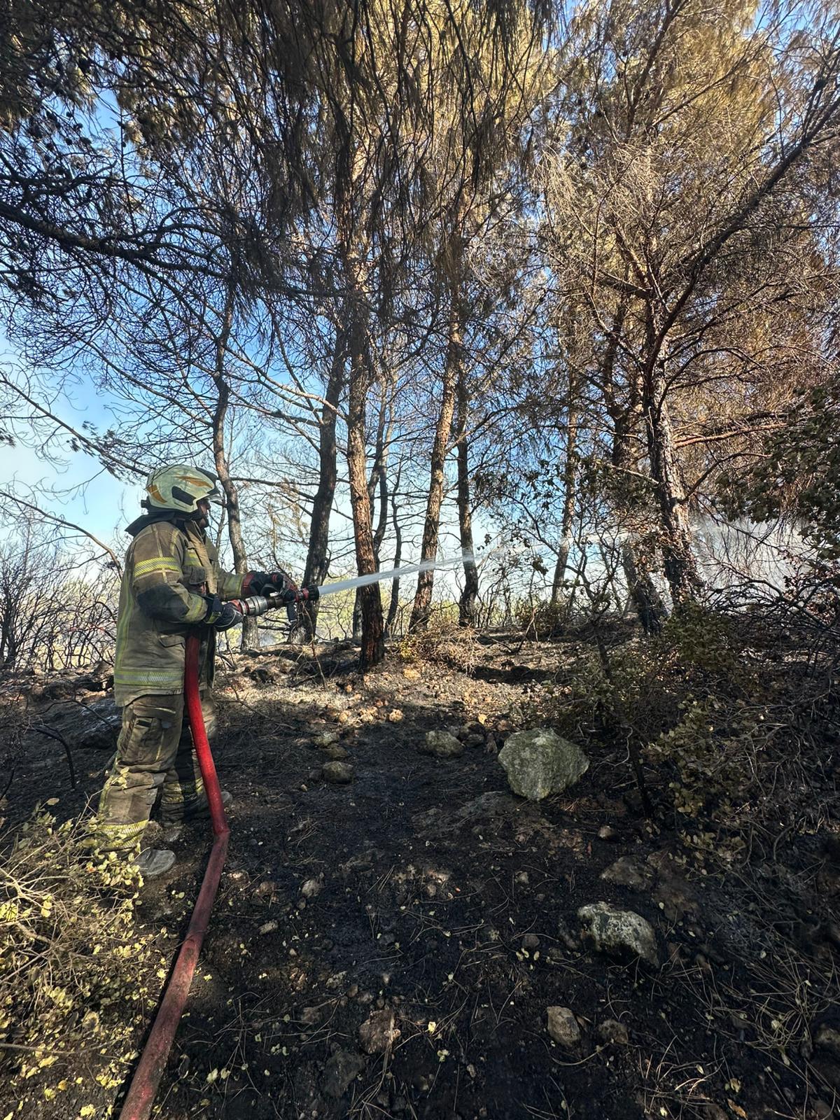 İzmir Büyükşehir Belediyesi İtfaiye ve İzmir Orman Bölge Müdürlüğü ekipleri, Urla Camiatik Mahallesi Reyhan Sokak üzerinde ormanlık alanda çıkan yangına müdahalesini sürdürüyor.