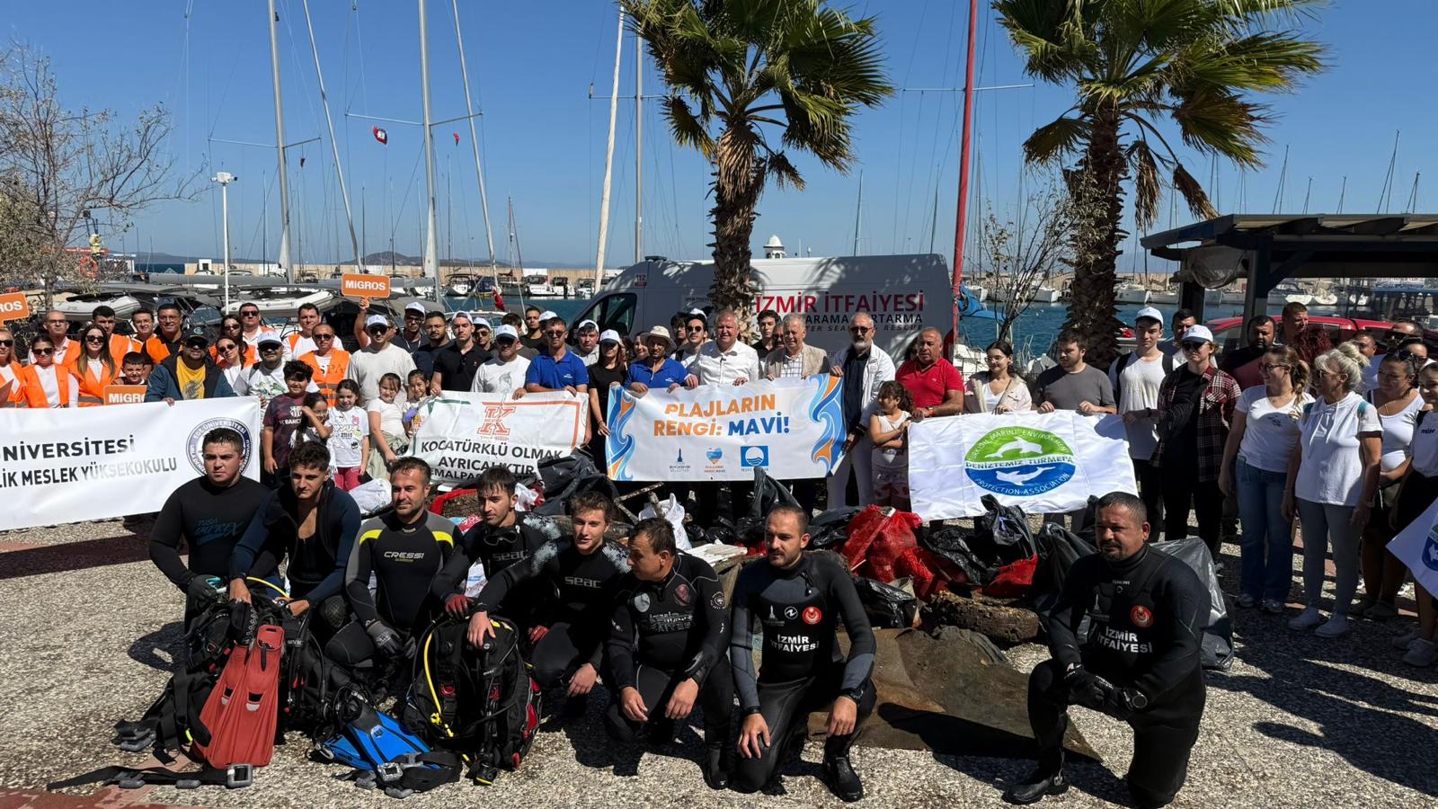EGEMENLİK - Deniz gönüllüleri bu yıl da temiz denizler için harekete geçti. Uluslararası Kıyı Temizleme (International Coastal Cleanup – ICC) Günü çerçevesinde, DenizTemiz Derneği/TURMEPA öncülüğünde Urla ilçesinde kıyı temizliği yapıldı. Etkinliğe İzmir Büyükşehir Belediyesi Çevre Koruma ve Kontrol Dairesi Başkanlığı Deniz Koruma Şube Müdürlüğü, İzmir Büyükşehir Belediyesi İtfaiye Daire Başkanlığı Sualtı Kurtarma ekipleri, Urla Belediyesi, İzmir Deniz Ticaret Odası, Ege Üniversitesi Denizcilik Meslek Yüksekokulu, Migros Urla ekibi, Koca Türk Koleji, Urla Kent Konseyi ve çok sayıda gönüllü katıldı. Urla İskele'den başlayan kıyı temizliği denizden de İtfaiye ekipleri ile devam etti. Denizden araba lastiği de çıktıUrla Belediye Başkanı Selçuk Balkan'ın da katıldığı etkinlik sonunda kıyıdan ve denizden bir saatte yaklaşık 1,5 ton atık toplandı. Toplanan atıklar arasında çok sayıda plastik şişe ve kapakları, gıda ambalajı, sigara izmariti, metal içecek kapakları, pipetler ve plastik poşetler dikkat çekti. Toplanan atıklar belediye ekiplerine teslim edildi. Çevreye duyarlılığı artırmak için yapılan etkinlikte “Denizlerimiz bizler için çok önemli. Temizlemekten öte kirletmemek gerekir” mesajı verildi.