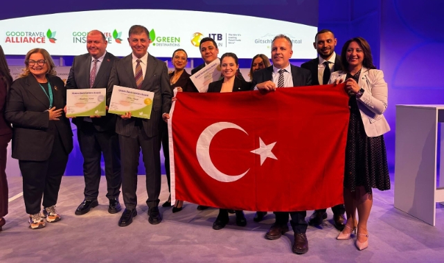 ITB Berlin’de gerçekleştirilen törende Urla’nın Altın Ödülü, İzmir Büyükşehir Belediye Başkanı Cemil Tugay tarafından teslim alındı.