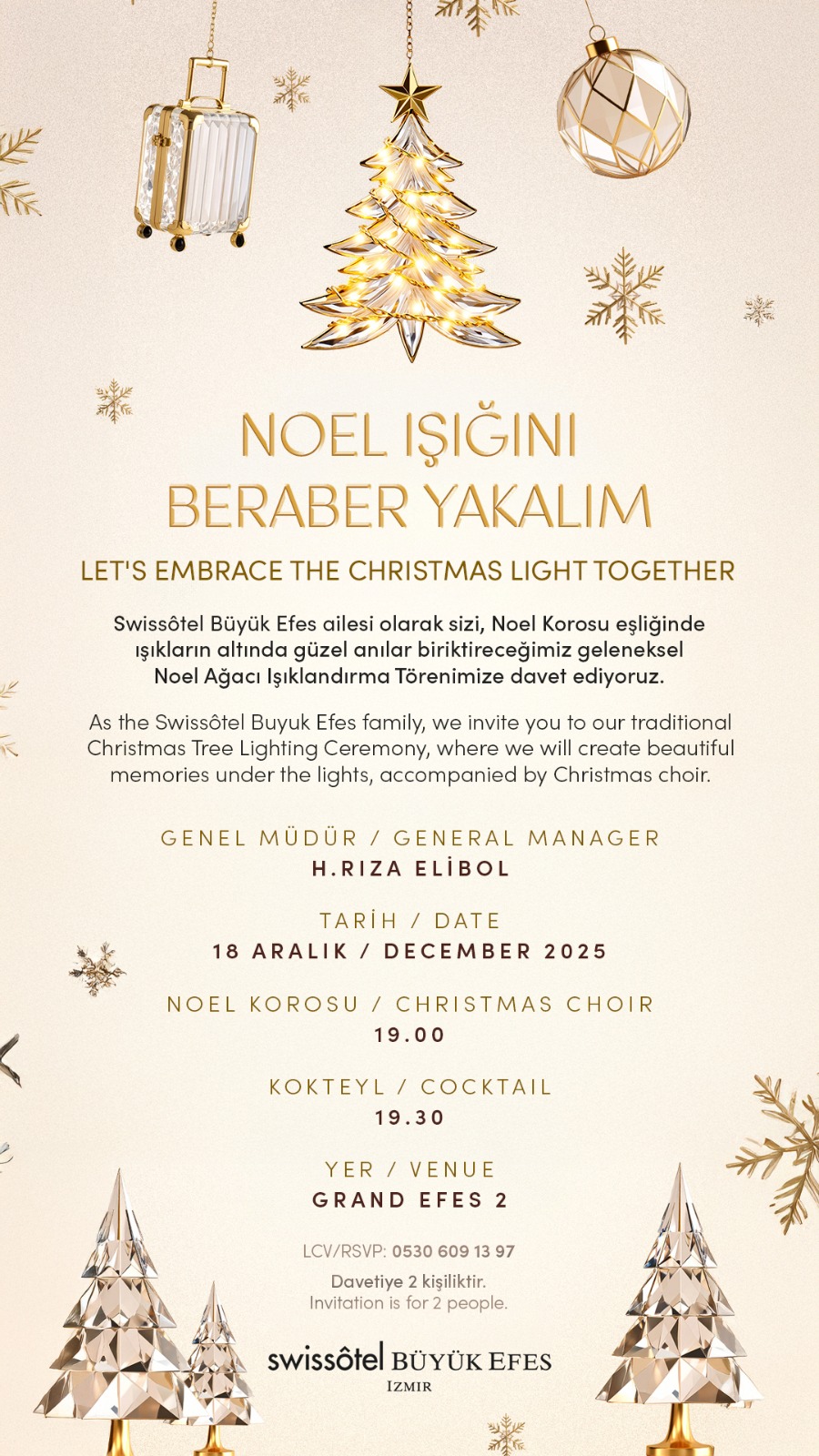 Swissôtel Büyük Efes İzmir, geleneksel hale gelen "Noel Ağacı Işıklandırma" seremonisi Alsancak Katolik Kilisesi Korosu tarafından söylenenen yeni yıl şarkıları eşliğinde yakıldı.