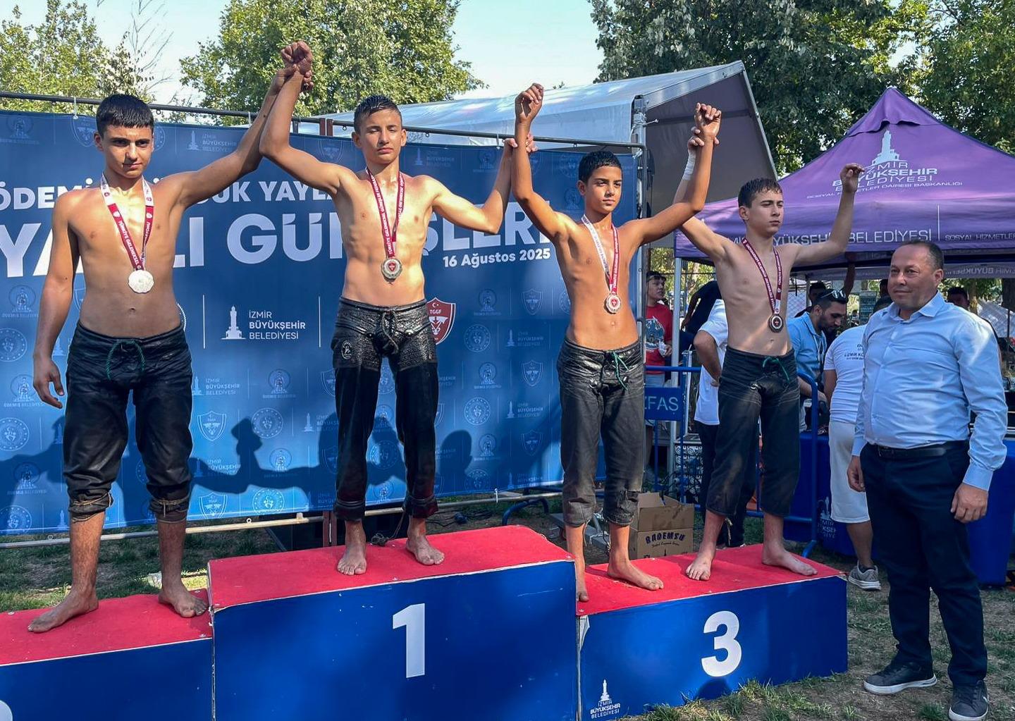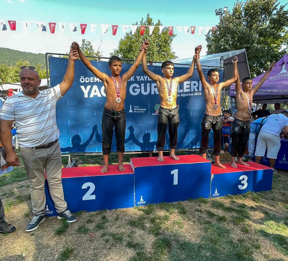 EGEMENLİK - İzmir Büyükşehir Belediye Başkanı Dr. Cemil Tugay’ın katıldığı Ödemiş Gölcük Yaylası Yağlı Güreşleri büyük heyecana sahne oldu. İzmir Büyükşehir Belediyesi, Ödemiş Belediyesi ve Türkiye Geleneksel Güreşler Federasyonu iş birliğiyle organize edilen turnuvada yaklaşık 500 pehlivan er meydanına çıktı. Altın kemer sahibine teslim edildiYarışlarda 30’un üzerinde başpehlivan mücadele ederken güreş ağalığı ise iş insanı Habil Tükenmez tarafından 500 bin TL bedelle üstlenildi. Finalde kıran kırana geçen mücadelede Erkan Taş, rakibi Tufan Güzel’i mağlup ederek altın kemerin sahibi oldu. Kemer, Ödemiş Belediye Başkanı Mustafa Turan ve güreş ağası Habil Tükenmez tarafından Taş’a takdim edildi.Dereceye girenler belli olduBaş Boyu kategorisinde üçüncülüğü 662. ve 663. Kırkpınar Yağlı Güreşleri’nin altın kemer sahibi Yusuf Can Zeybek alırken, Mustafa Batu da üçüncülük kürsüsüne çıktı. Organizasyonda dereceye giren diğer isimler de netlik kazandı. Başaltı Boyu kategorisinde Onur Susuz birinci, Samet Ocak ikinci, Mustafa Cebesi ve Halil Can Dağcan ise üçüncü oldu. Büyük Orta Boyu kategorisinde Hüseyin Coşkun, Küçük Orta Büyük Boyu’nda İbrahim Şamil Özak, Küçük Orta Küçük Boyu’nda Görkem Yasin Şefik, Deste Büyük Boyu’nda Batuhan Öztürk, Deste Orta Boyu’nda Beytullah Sarı, Deste Küçük Boyu’nda Ercan Bakan, Ayak Boyu’nda Ali Mert Uçtu, Tozkoparan Boyu’nda Nurullah Eliş, Teşvik İki Boyu’nda Mithat Başeğmez, Teşvik Bir Boyu’nda Sametcan Meler, Minik İki Boyu’nda Hamza Özpiriççi ve Minik Bir Boyu’nda ise Bulut Yaman birincilik elde etti. Ödemiş Gölcük Yaylası’nda büyük ilgi gören yağlı güreşler, hem kıyasıya mücadelelere hem de izleyiciler için unutulmaz bir spor şölenine ev sahipliği yaptı.