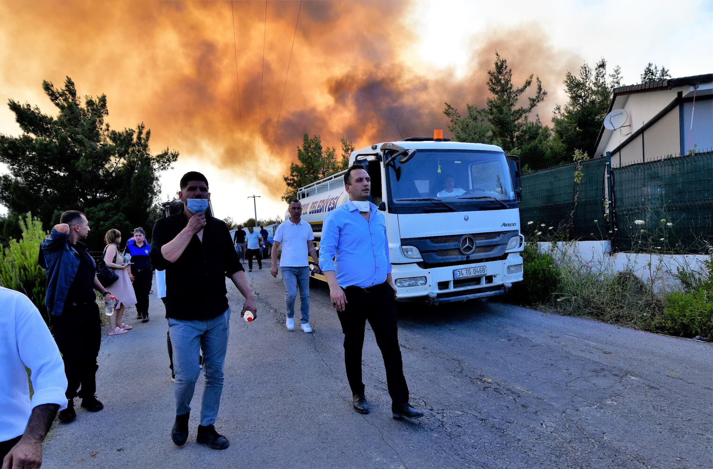 Alevlerin yerleşim yerlerini tehdit etmesi üzerine Yakaköy Mahallesi'nde yaşayan vatandaşlar için tahliye kararı alındı. Yoğun çabalara rağmen bazı ev ve ahırların yangından zarar gördüğü öğrenildi. Bornova Belediyesi ekipleri de, Başkan Ömer Eşki'nin talimatıyla bölgeye intikal ederek iş makineleri ve su tankerleriyle söndürme çalışmalarına destek verdi. Belediyenin hızlı müdahalesi sayesinde iki evin yanmaktan son anda kurtarıldığı belirtildi.Yangın haberini alır almaz kriz masasını oluşturan ve soluğu Yakaköy'de alan Bornova Belediye Başkanı Ömer Eşki, söndürme çalışmalarını bizzat yerinde koordine etti. Başkan Eşki'nin yönlendirmesiyle hareket eden Bornova Belediyesi Fen İşleri ve Temizlik İşleri Müdürlüğü'ne bağlı ekipler, özellikle evlerin bulunduğu kritik noktalarda yoğun bir çaba sarf etti.Alevlerin sardığı bazı müstakil evlerin etrafını iş makineleriyle temizleyen ve su tankerleriyle aralıksız soğutma yapan ekipler, bu evlerin tamamen kül olmasını engelledi.
